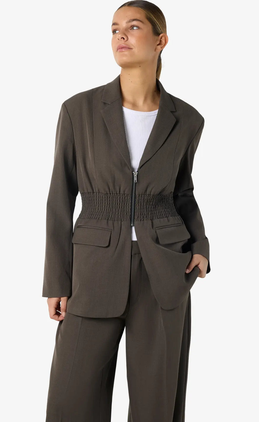 Blazer fra Noisy May i en mørk brun nuance med elegant design.