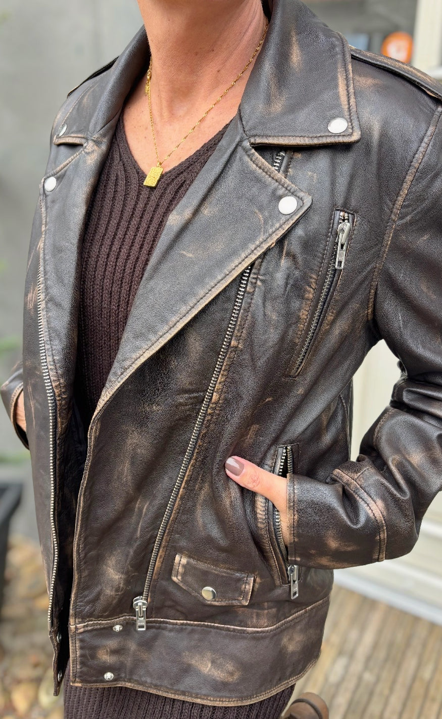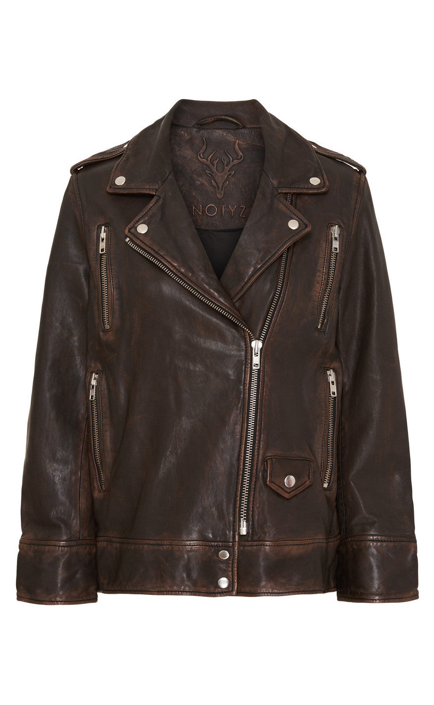 Notyz Jakke - Oversized Biker - Walnut w. Silver acc.