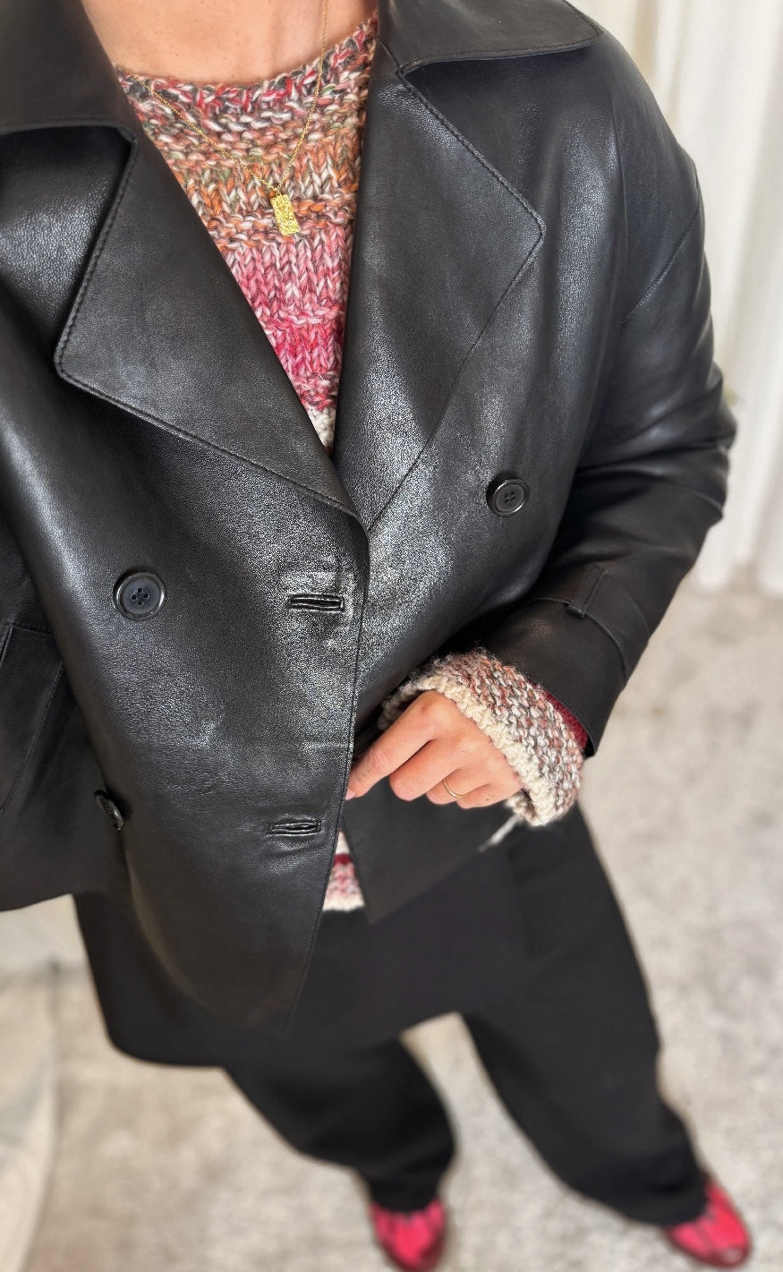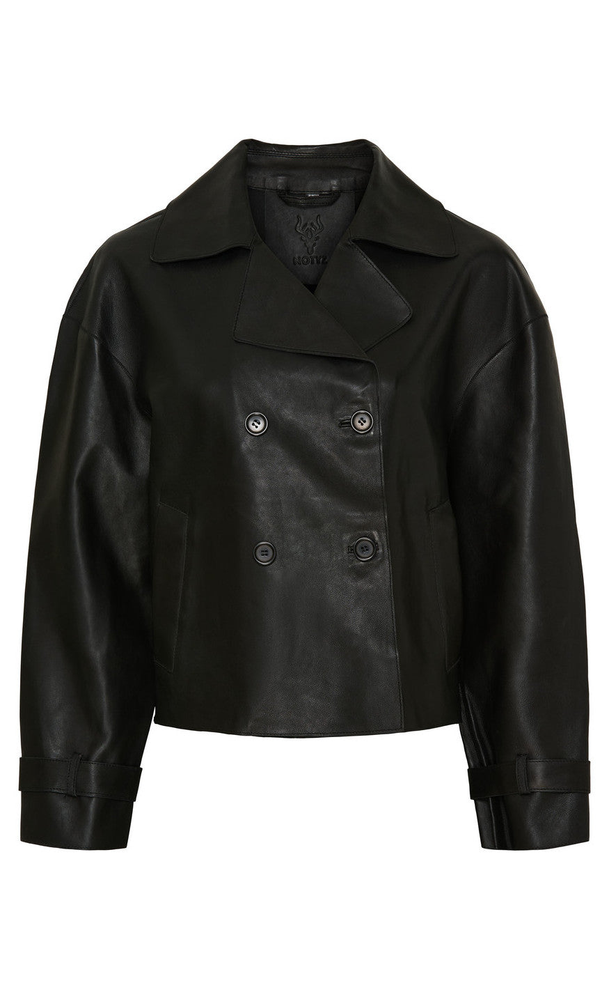 Notyz Jakke - Short Leather Trenchcoat - Black