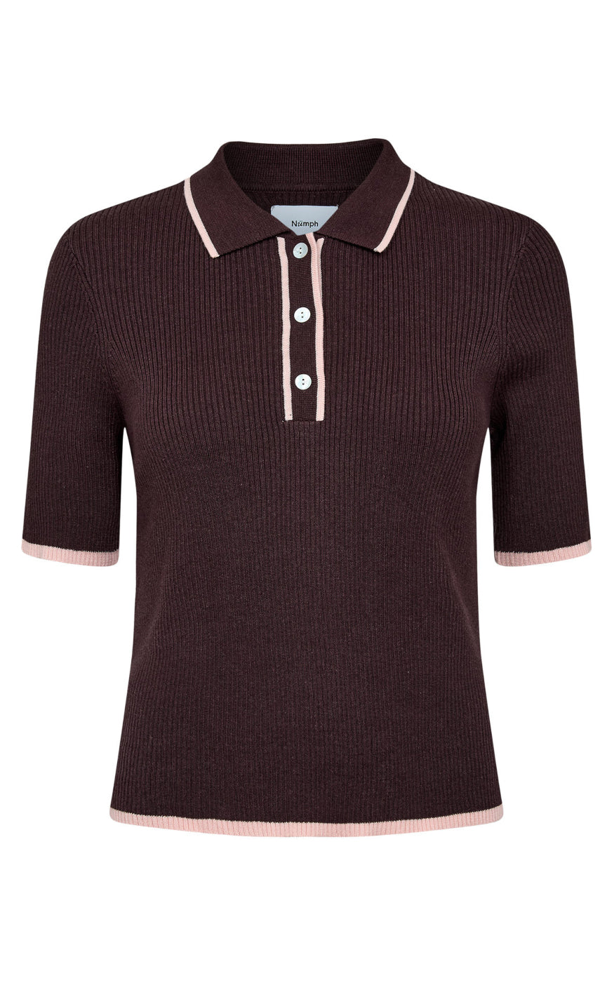 Feminin strik fra Nümph i en blød brun nuance med fine kontrastdetaljer.