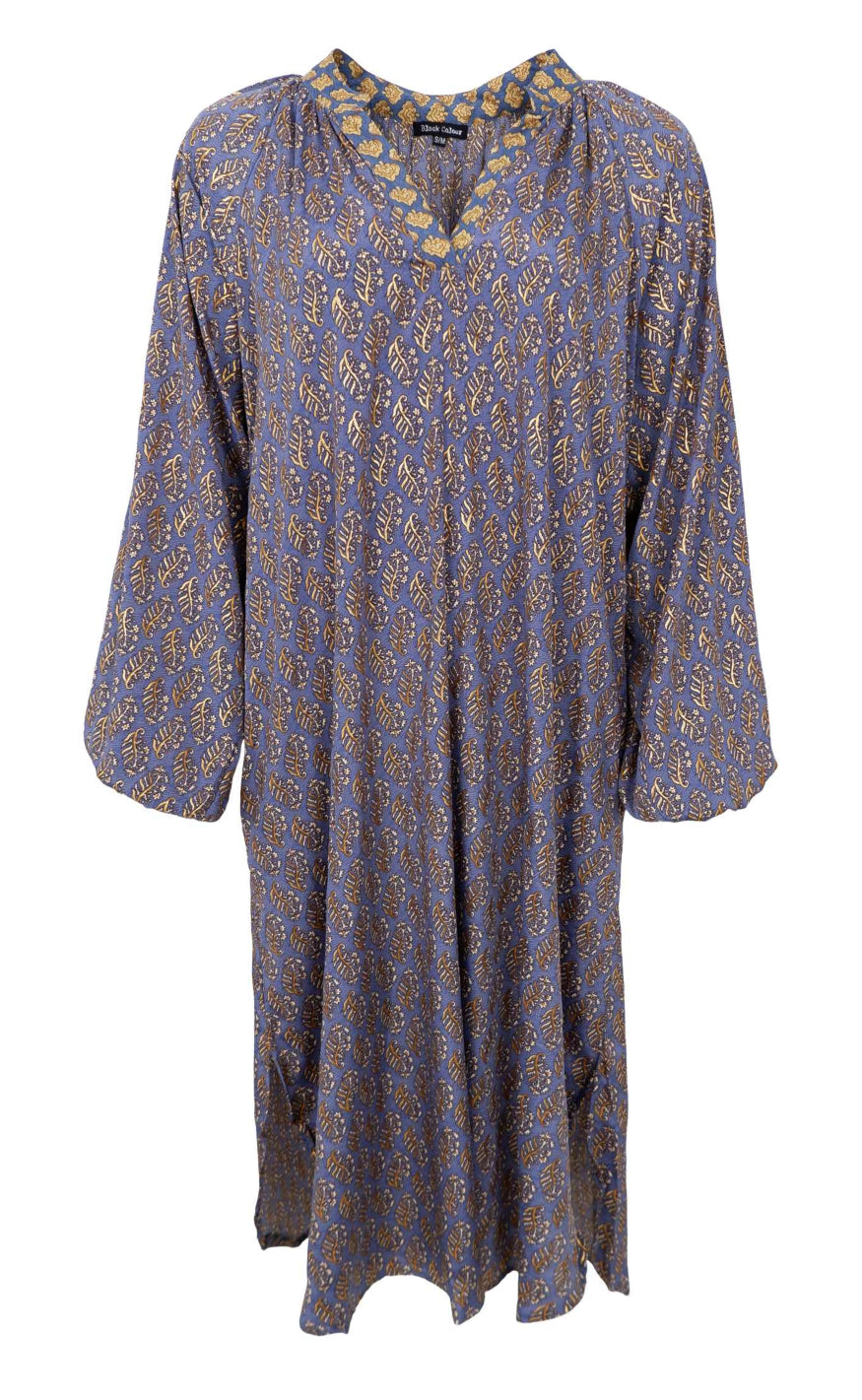 Feminin kjole fra Black Colour i et smukt blålilla print med fine, gyldne detaljer.