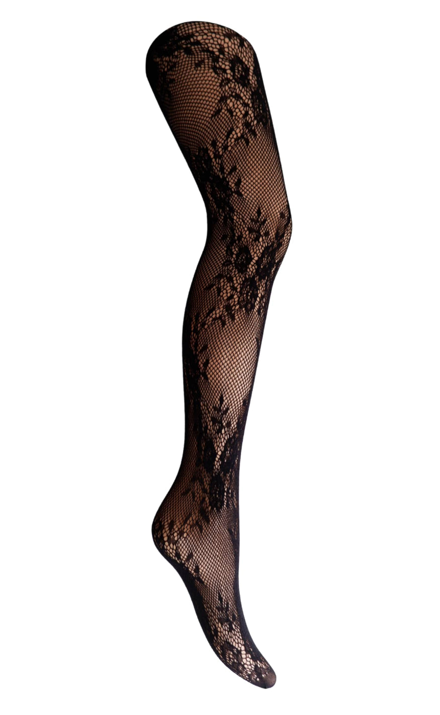 Elegante strømpebukser fra Black Colour i sort med et dekorativt blondemønster, der giver et stilfuldt og feminint udtryk.