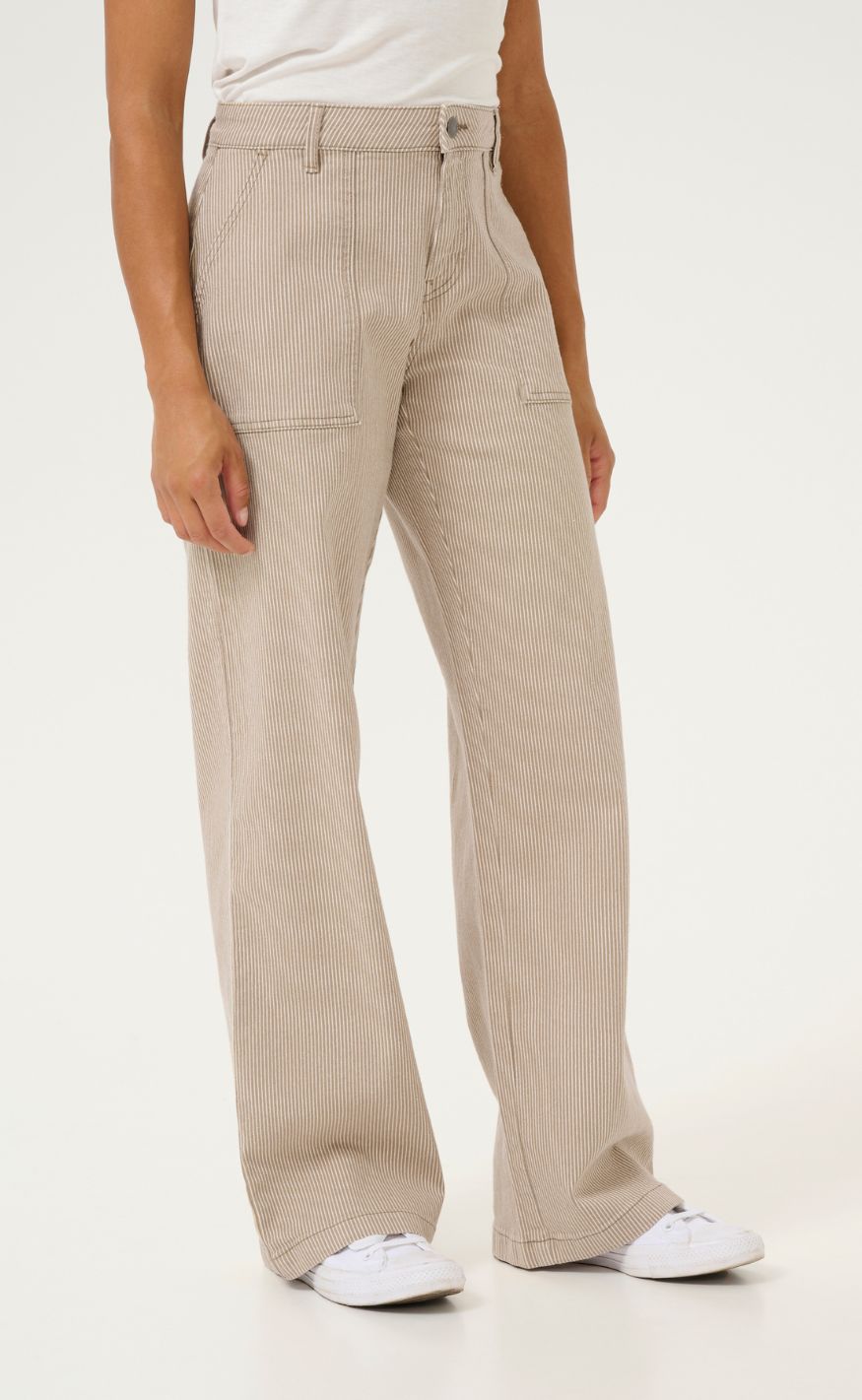 Stilrene bukser i en let, stribet kvalitet med lige ben og en afslappet pasform, der giver et moderne og casual udtryk.