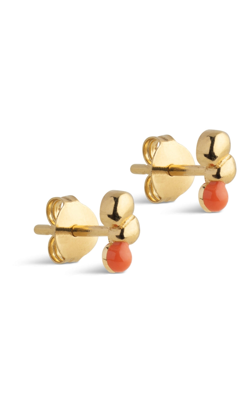 Fine ørestikker fra ENAMEL Copenhagen i guldfarvet finish med små kugledetaljer og orange farvede emalje.