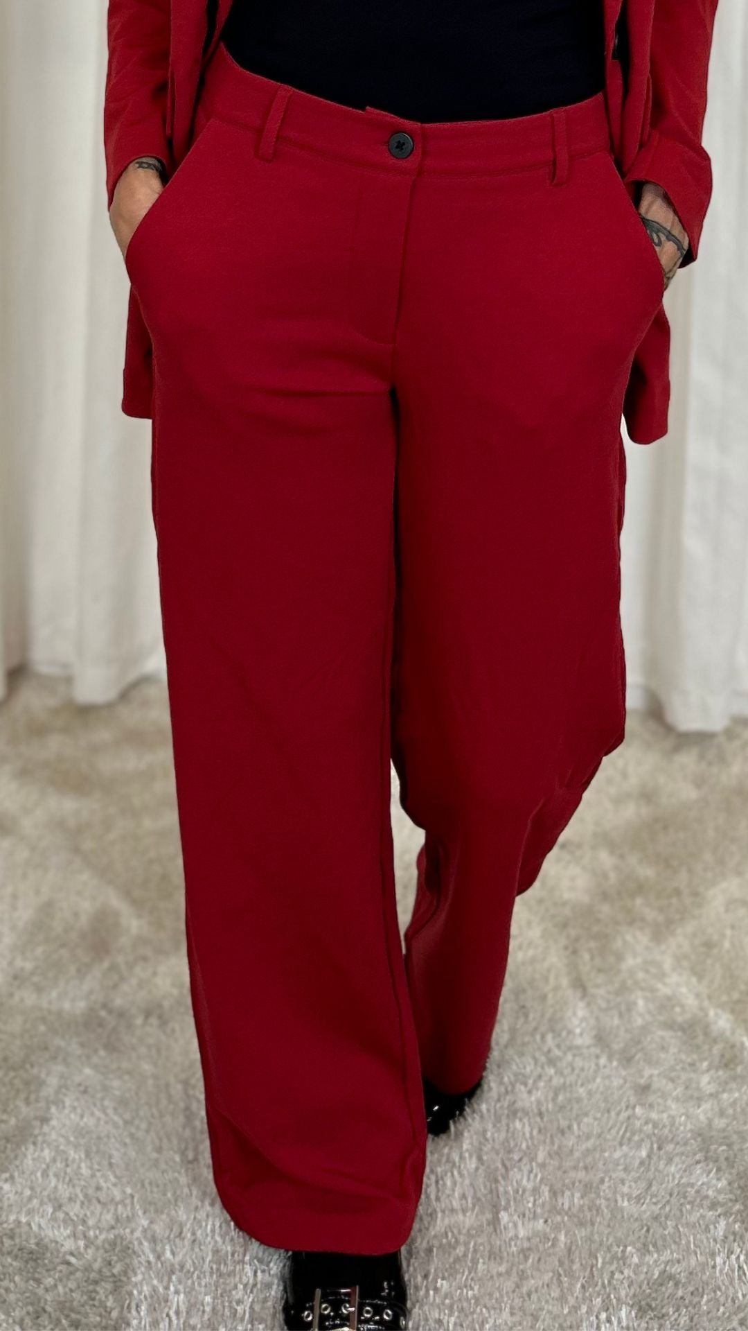 Lækre suit pants fra Freequent i en dyb rød nuance.