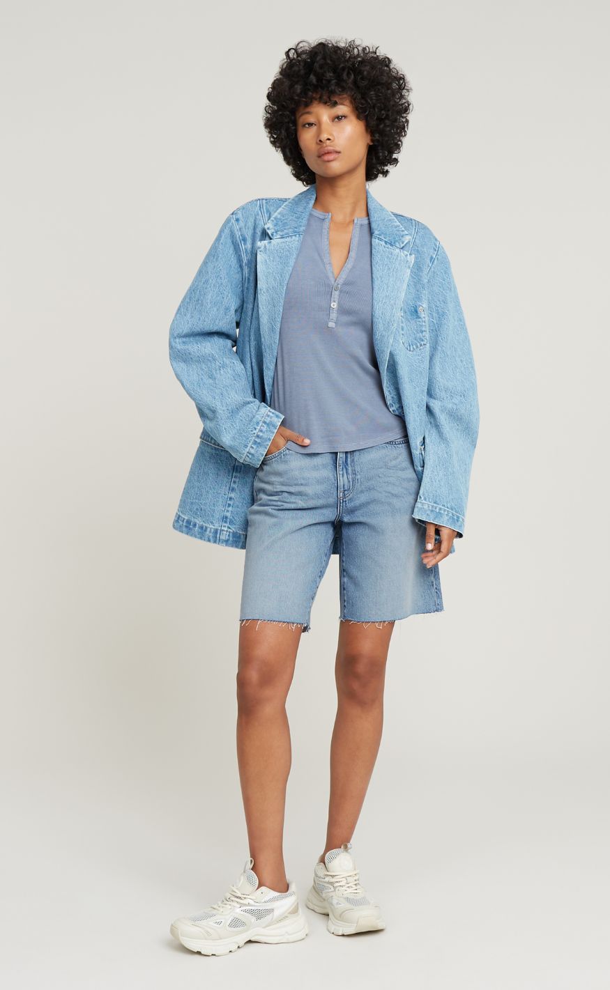 Den løse pasform og den længere længde skaber et moderne og afslappet udtryk – perfekte til en T-shirt eller top for et ubesværet sommerlook.