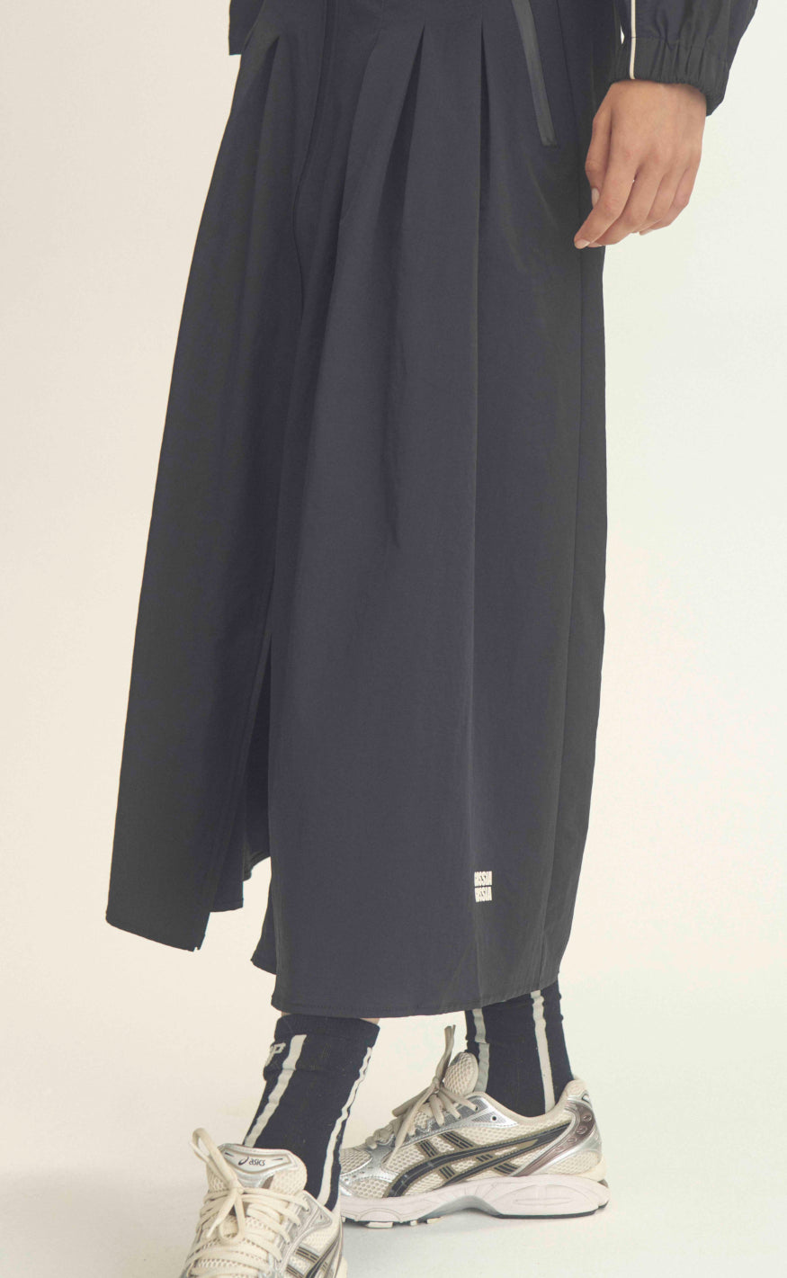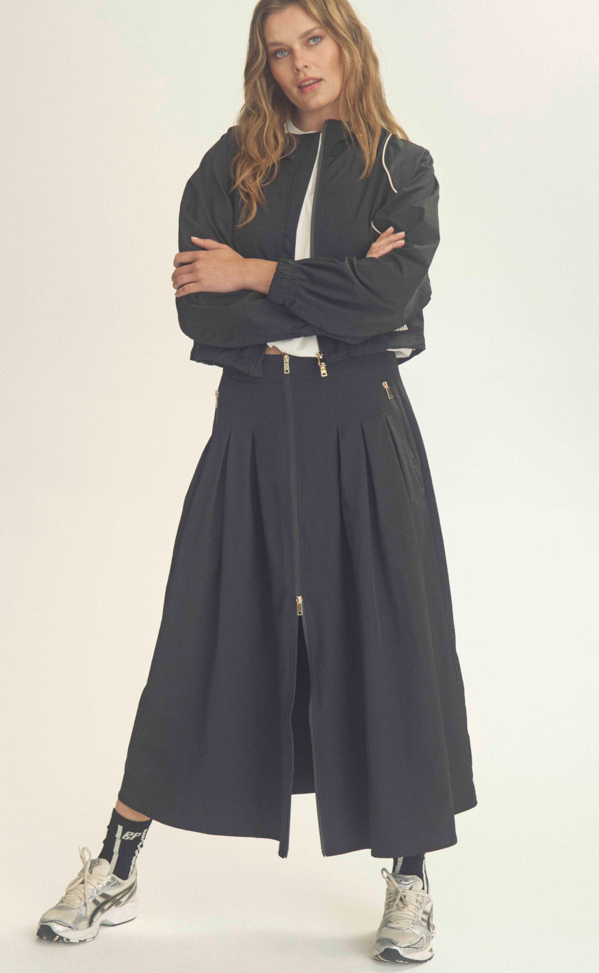 Nederdelen har flotte fald bagpå samt lukkes med lynlås.
