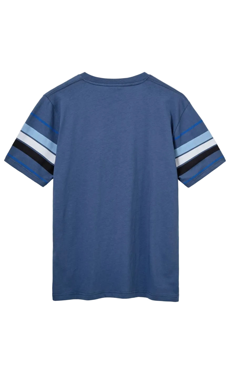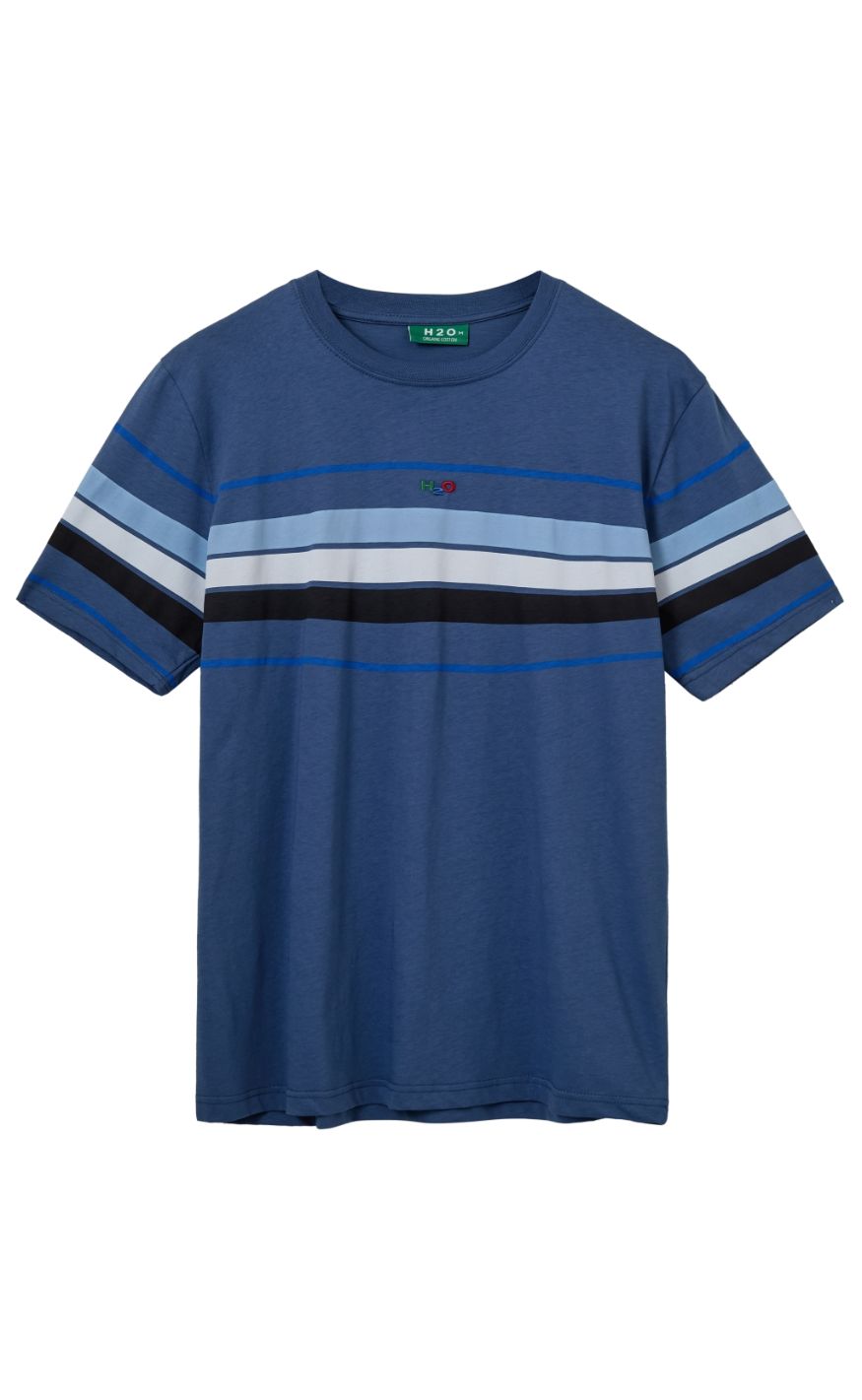 Klassisk T-shirt fra H2O i en dyb blå nuance med sporty striber hen over bryst og ærmer.