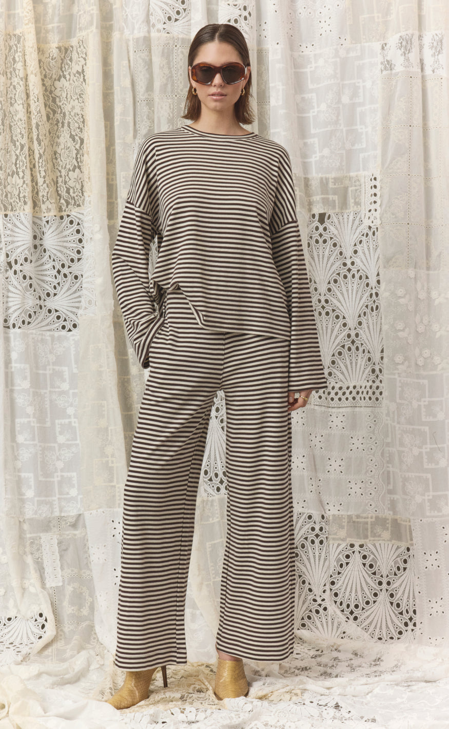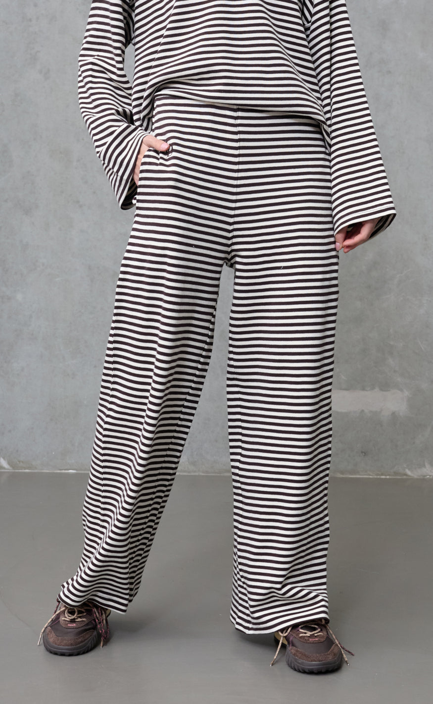 Lækre bukser fra Love & Divine i et brunt stribet print.