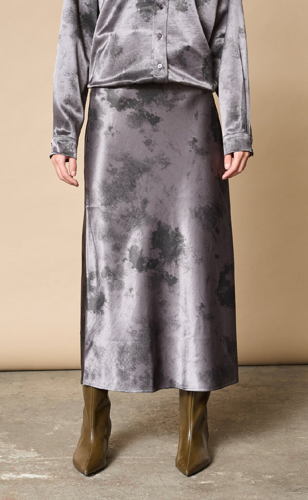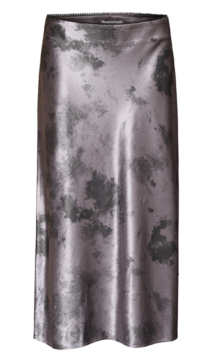 Skinnende nederdel fra Love & Divine i grå med marmoreret mønster.