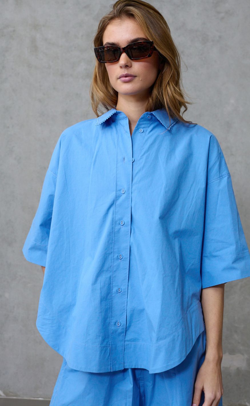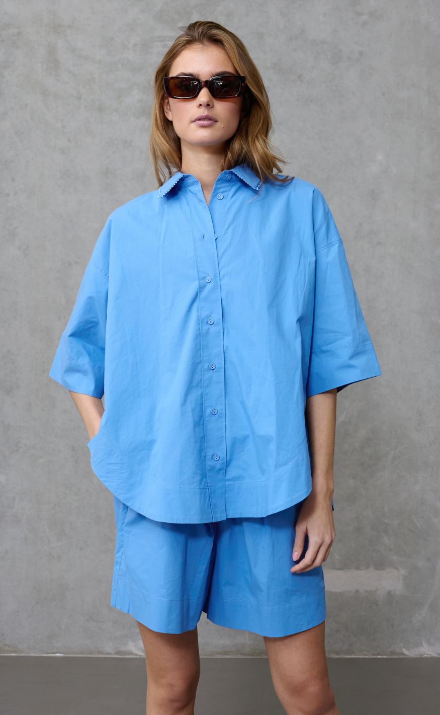 Klassisk skjorte i en afslappet og moderne silhuet. Designet med krave, gennemknapning og korte ærmer, der giver et rent og tidløst udtryk.