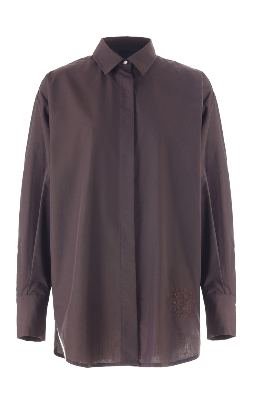 Skjorten har lange ærmer, klassisk krave og skjult knaplukning foran, som giver et stilrent og sofistikeret udtryk med fine, diskrete detaljer.
