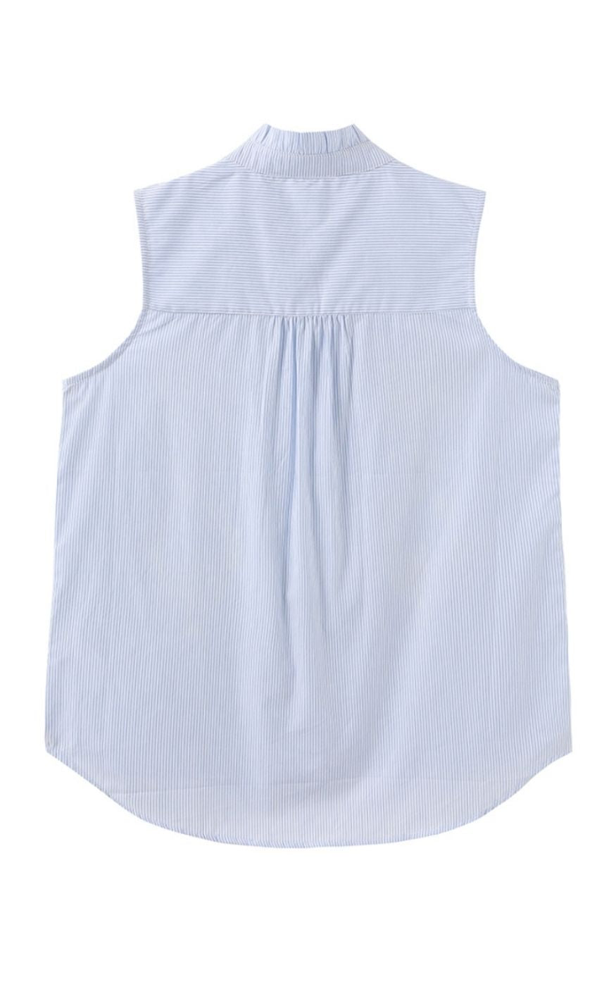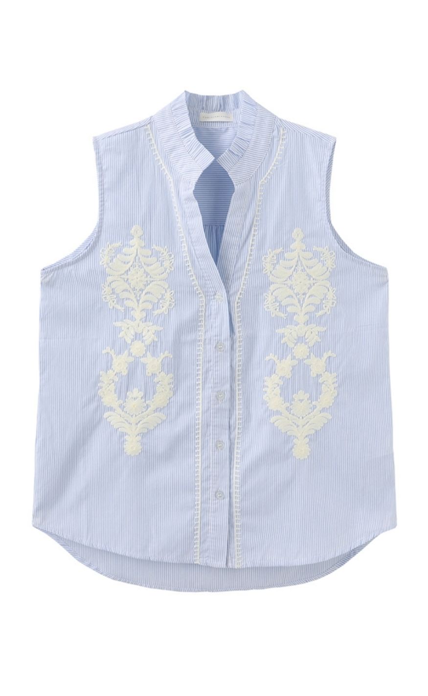 Let og feminin top fra Luxzuz i en luftig kvalitet med et elegant, afslappet fald. Designet har en løs pasform uden ærmer, klassisk krave og knaplukning foran, der giver et stilrent udtryk. De fine broderidetaljer tilfører et eksklusivt og dekorativt touch.