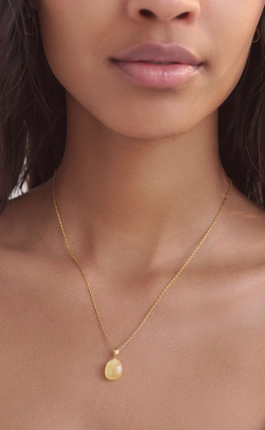 Elegant vedhæng fra Maanesten med en blød, organisk sten i en varm, gylden nuance, der giver et blødt og naturligt udtryk.