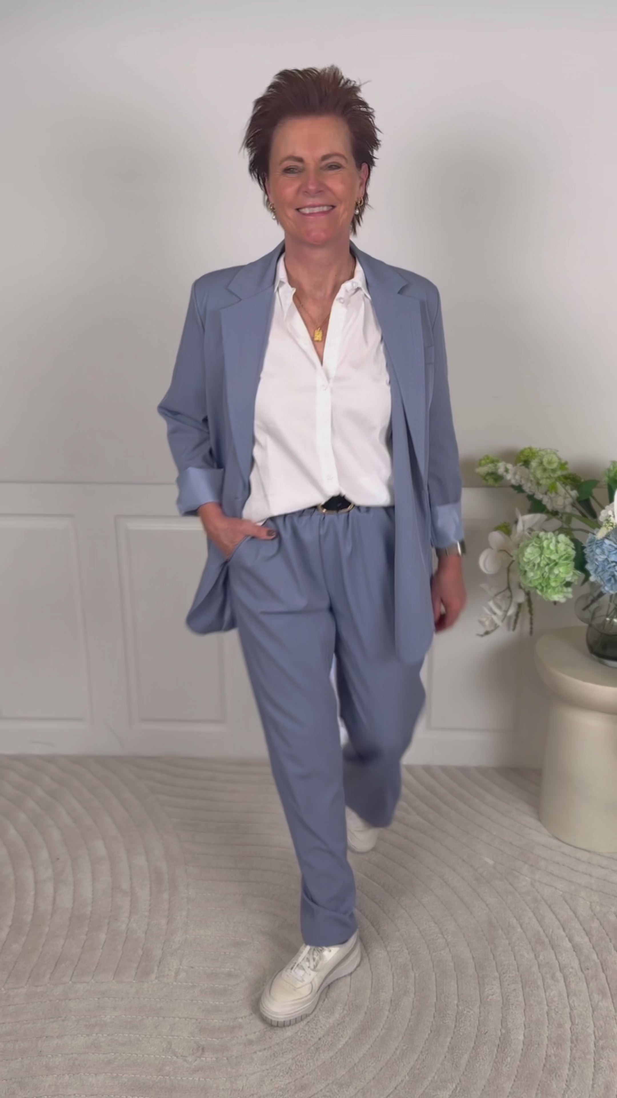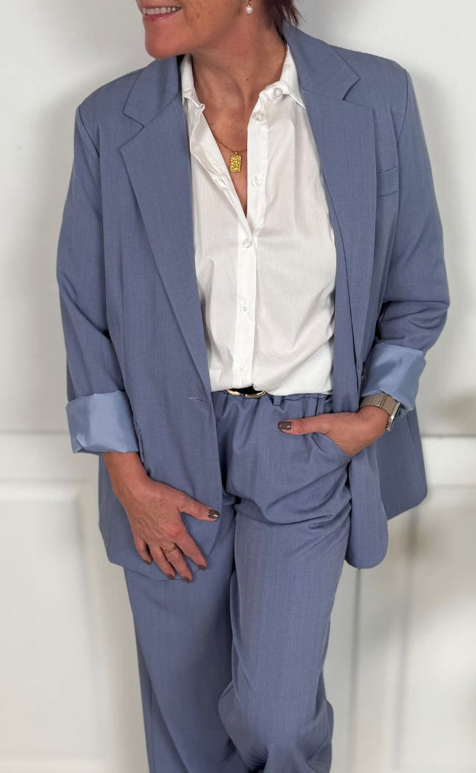 Elegant og klassisk blazer fra Marta Du Chateau i en smuk, støvet lyseblå nuance.