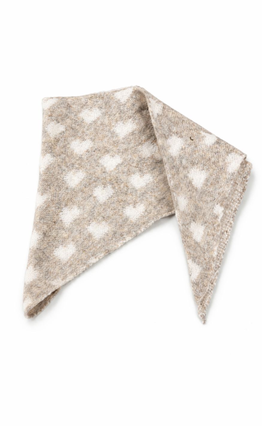 Blødt tørklæde med små hvide hjerter. Fremstillet i et behageligt materiale, der føles blidt mod huden og er velegnet til både hverdag og brug for de mindste.