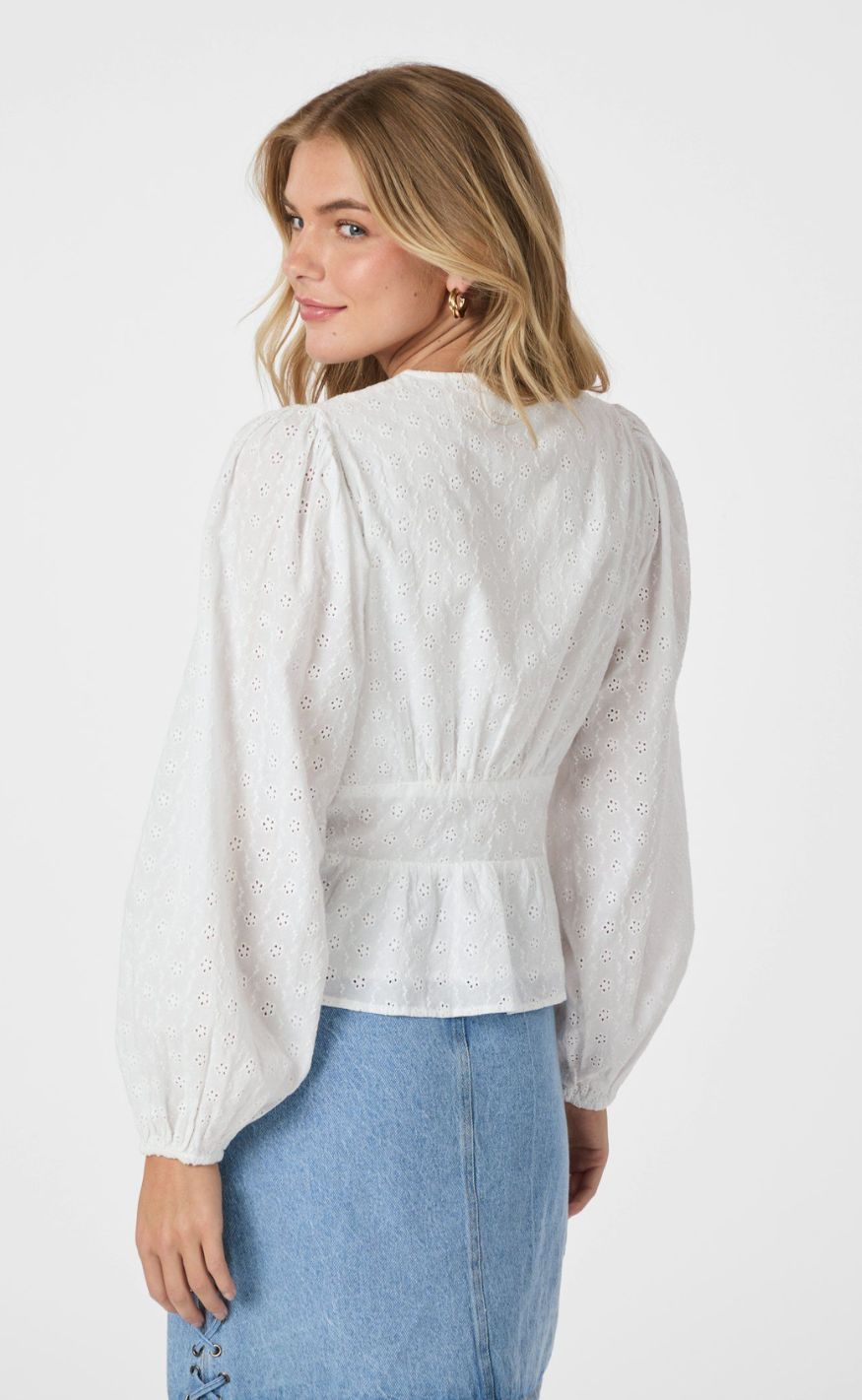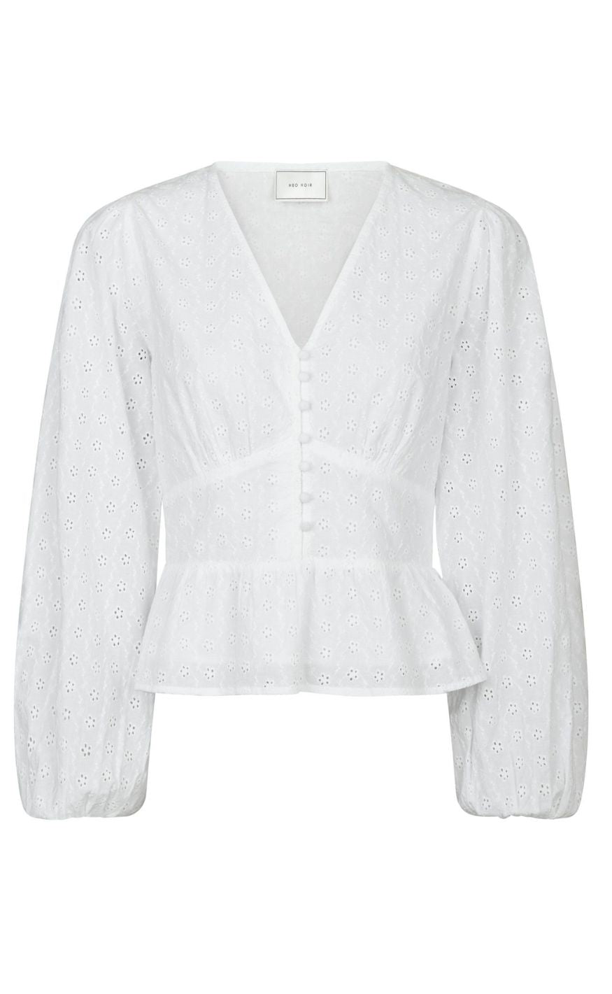 Feminin bluse fra Neo Noir i et hvidt broderi anglaise print.