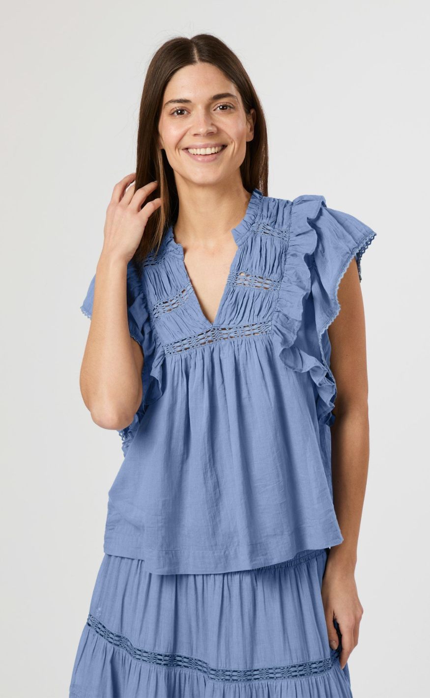 Feminin top fra Neo Noir i en blå nuance.