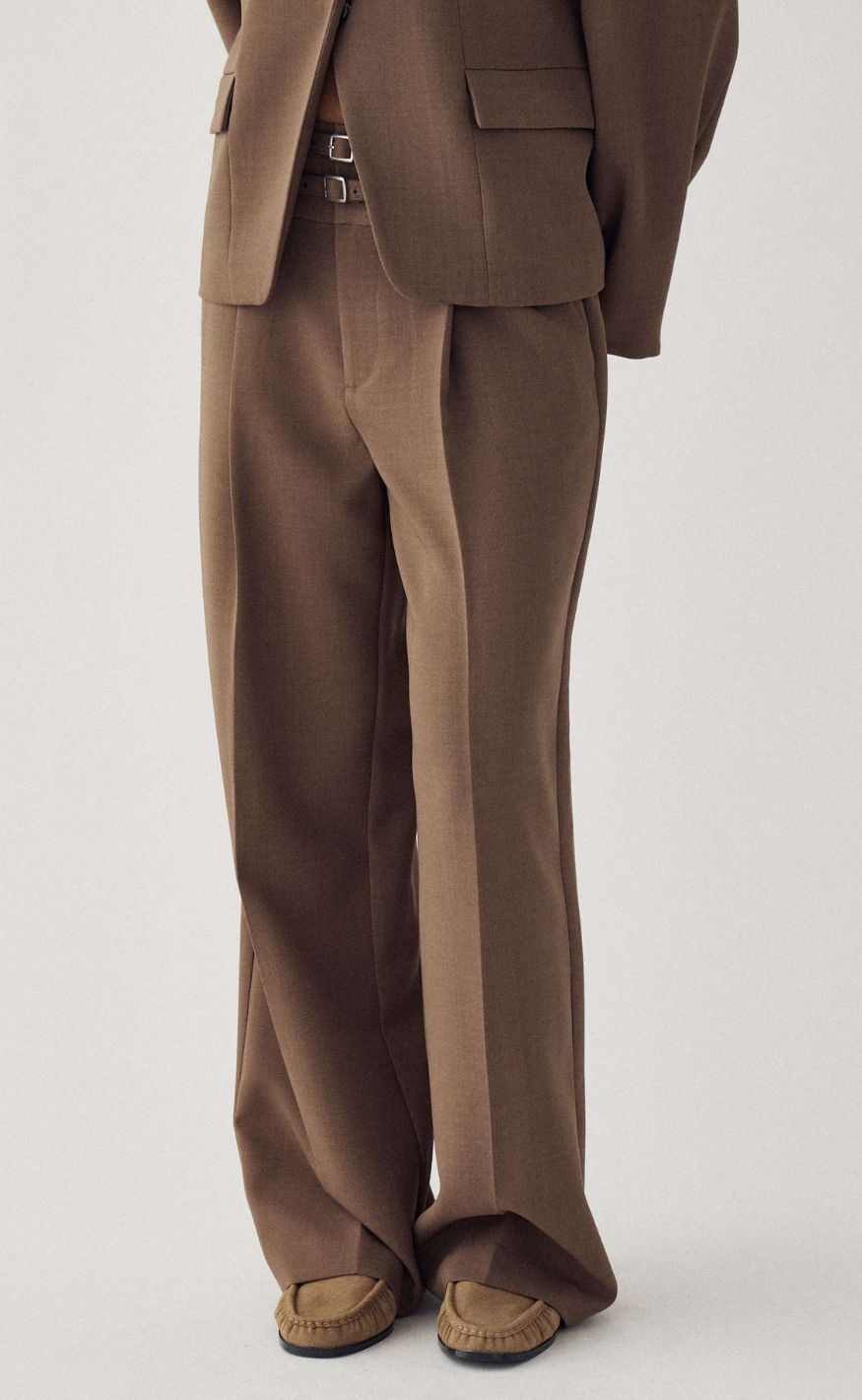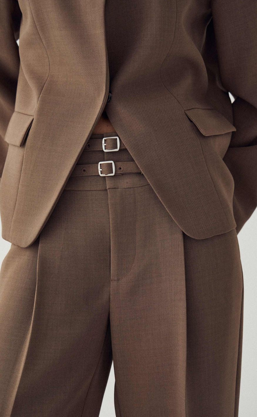 Bukserne har fine læg og bæltestropper med justerbare spænder, som tilføjer et raffineret twist og gør dem nemme at style både til hverdag og mere formelle looks.