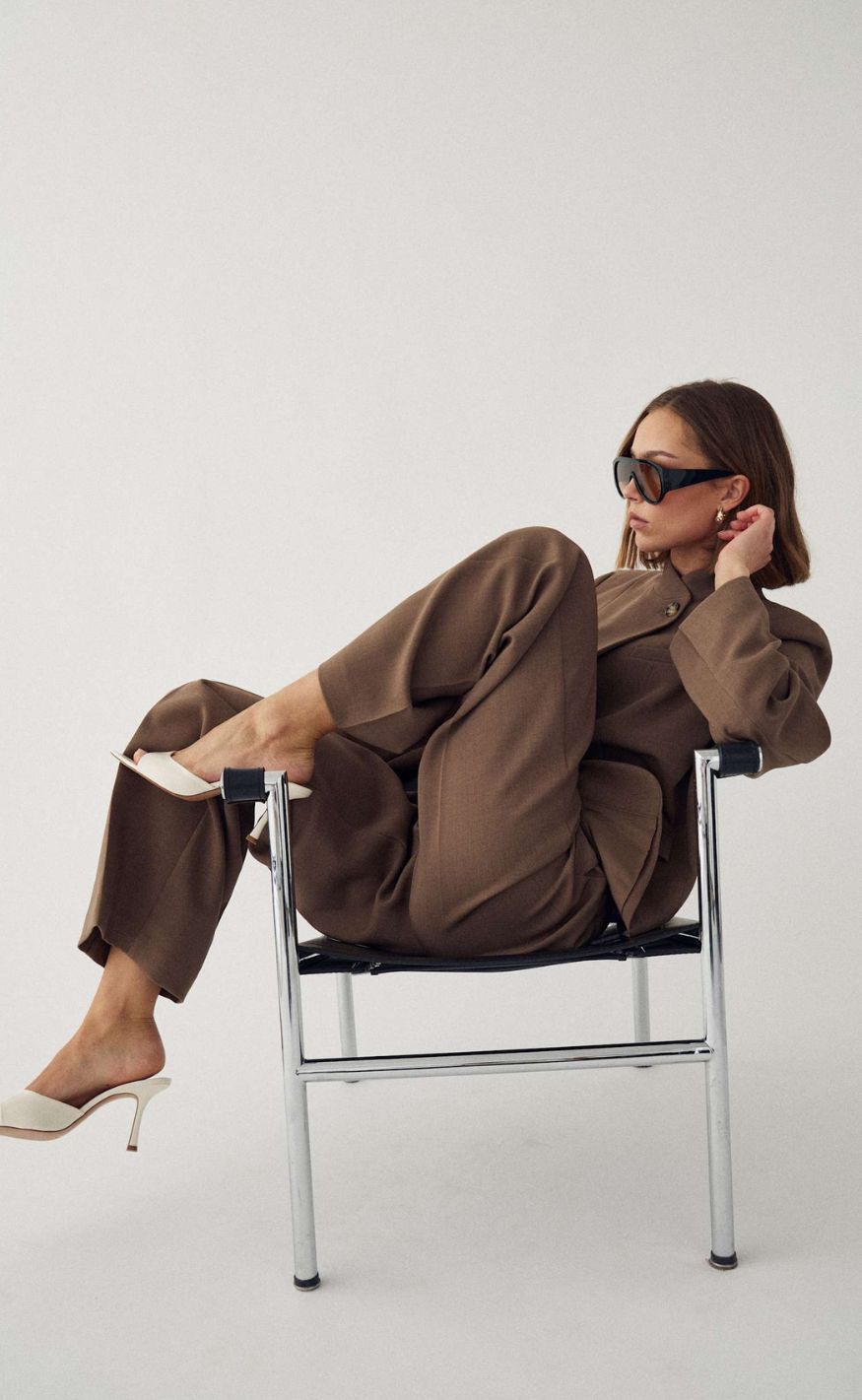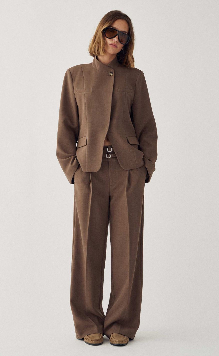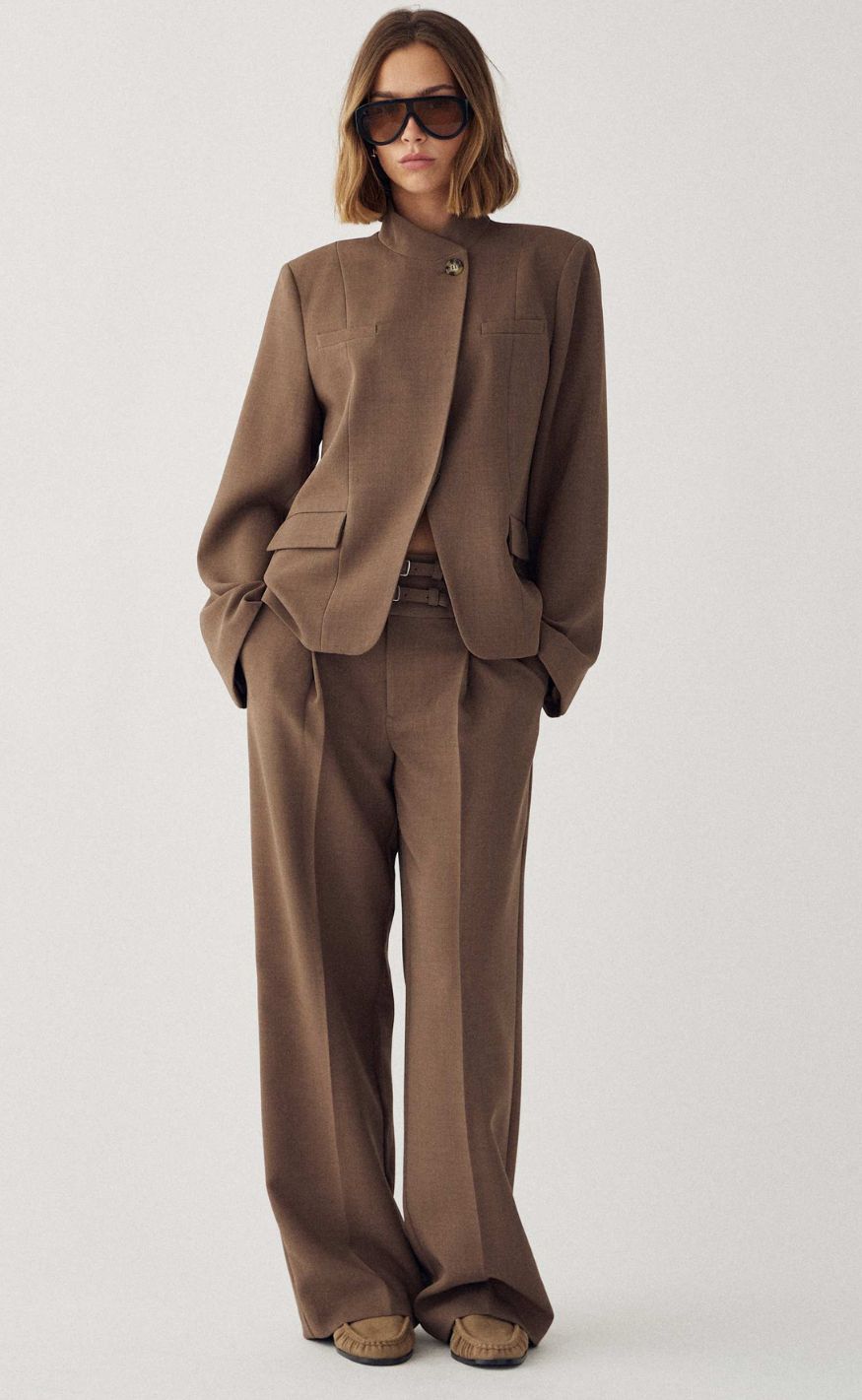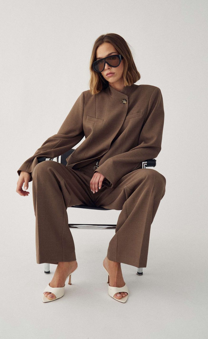 Elegante bukser fra Noella i en brun nuance med høj talje og lige ben, der giver et klassisk og velklædt udtryk.