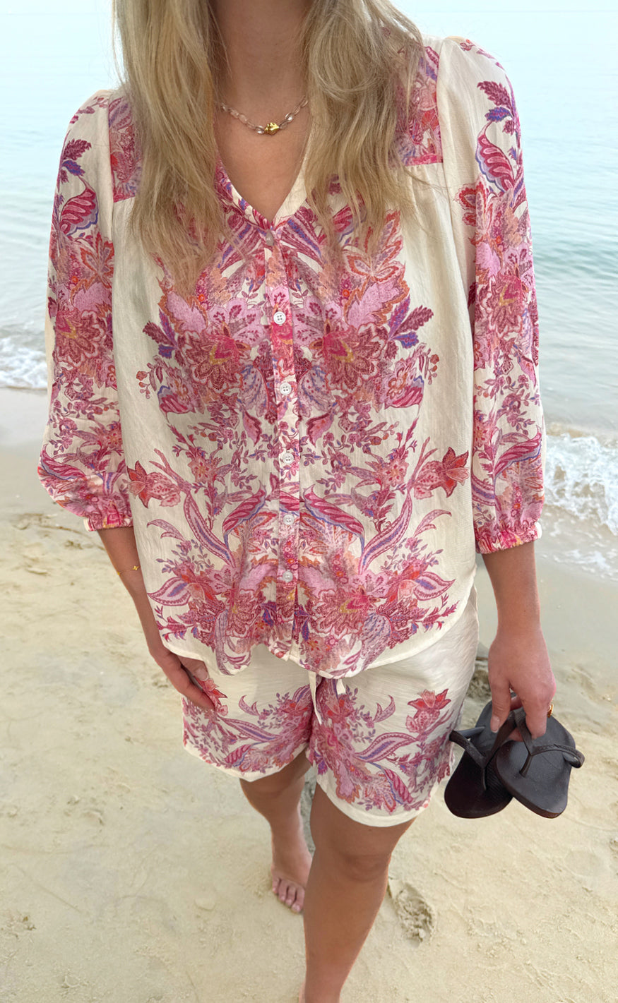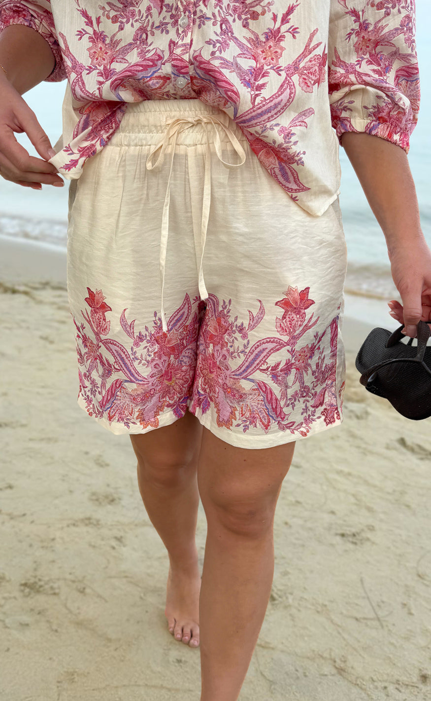 Feminine og sommerlige shorts i hvid med et smukt pink print.