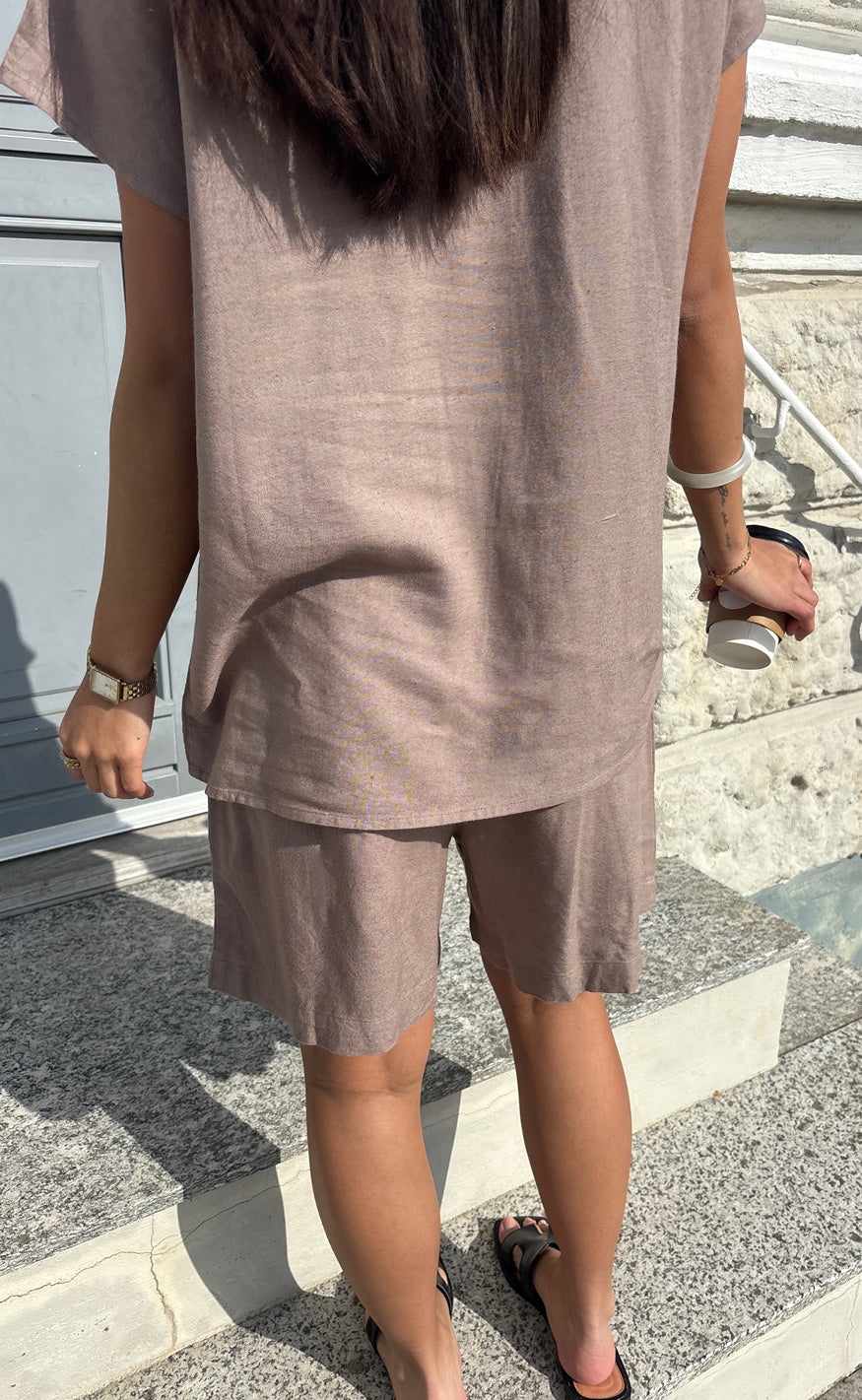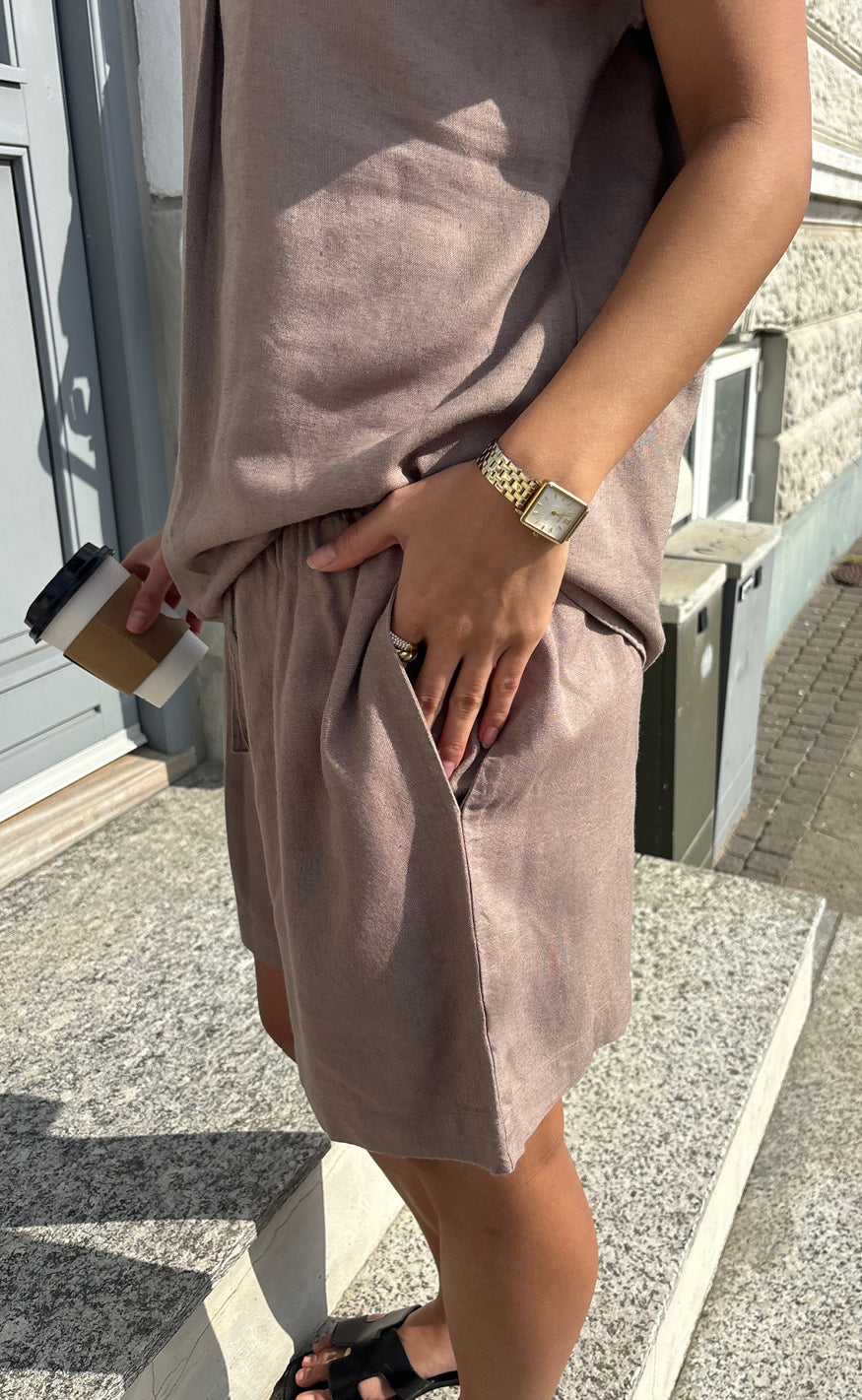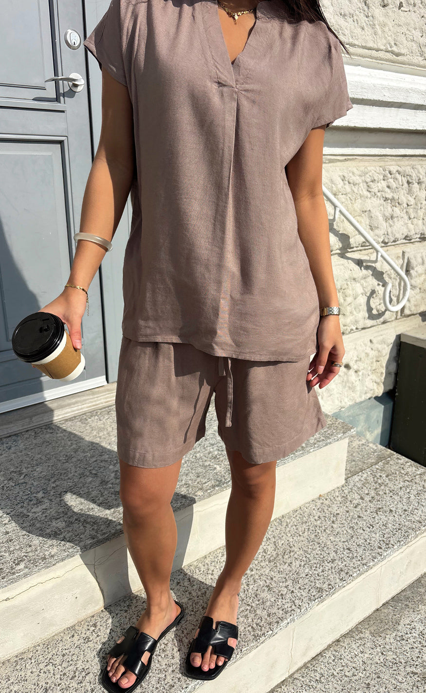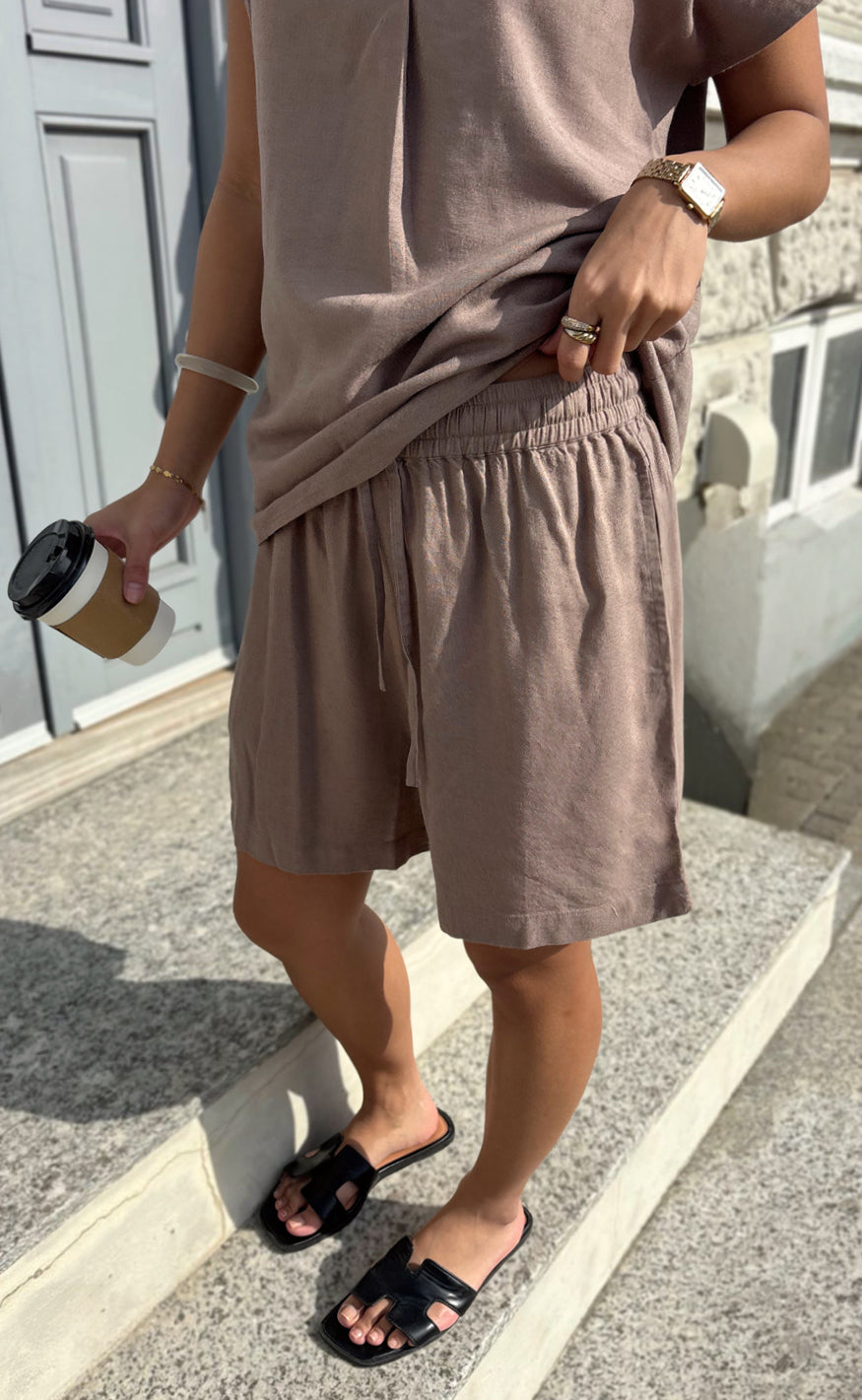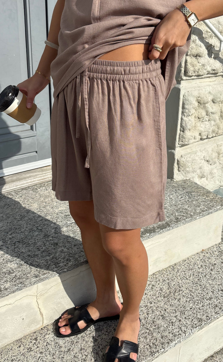 Flotte hør shorts fra Say INA Copenhagen i en brun nuance.