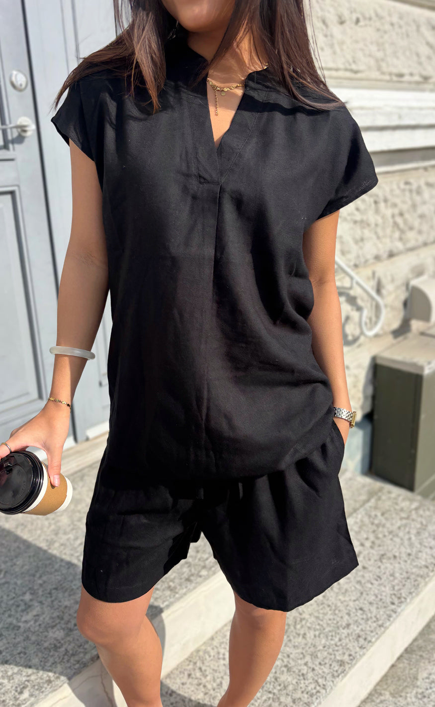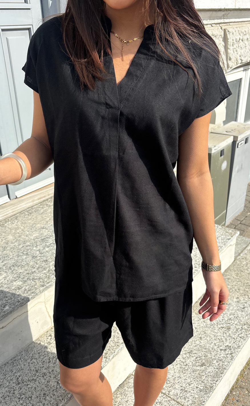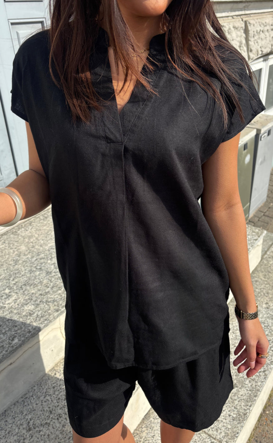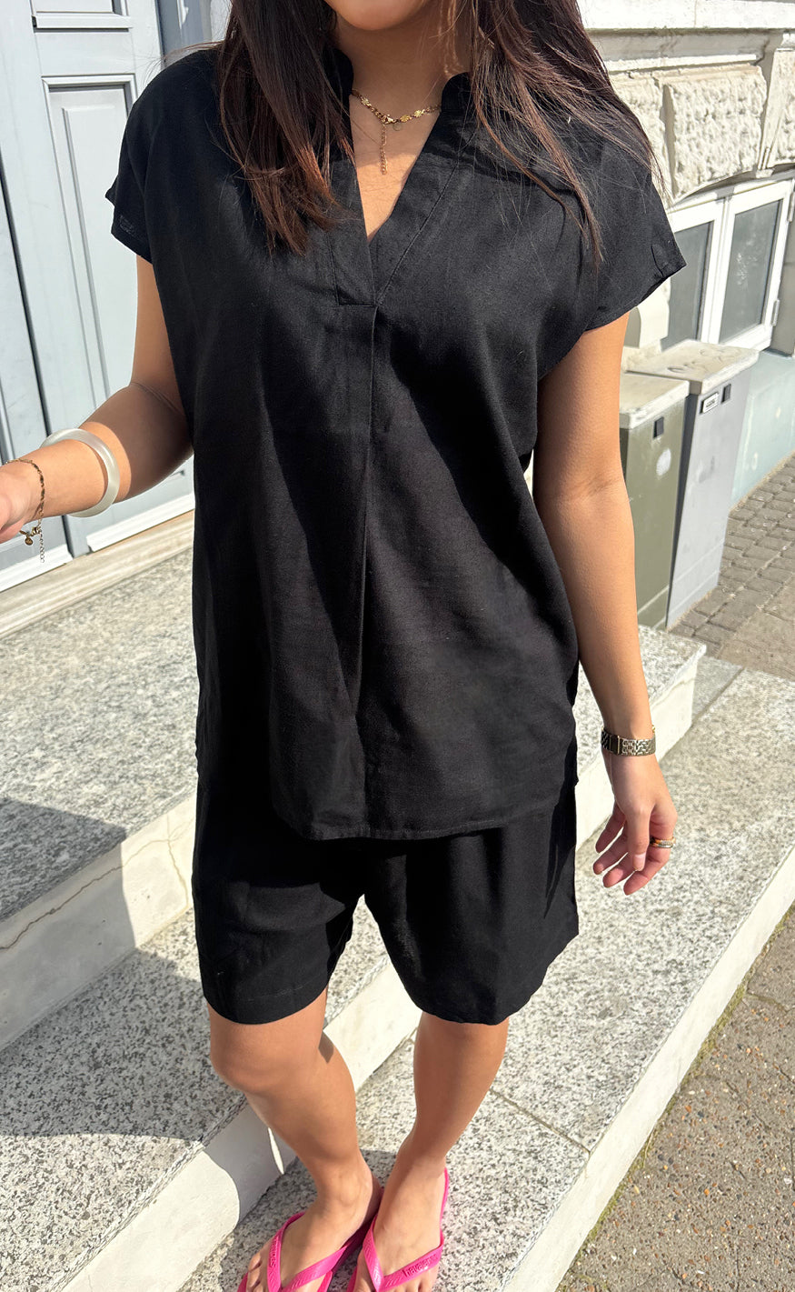 Say INA Copenhagen toppen er oplagt at style med matchende Say INA Copenhagen Shorts - Laura Linen - Black, men kan f.eks. også styles med jeans eller en nederdel.