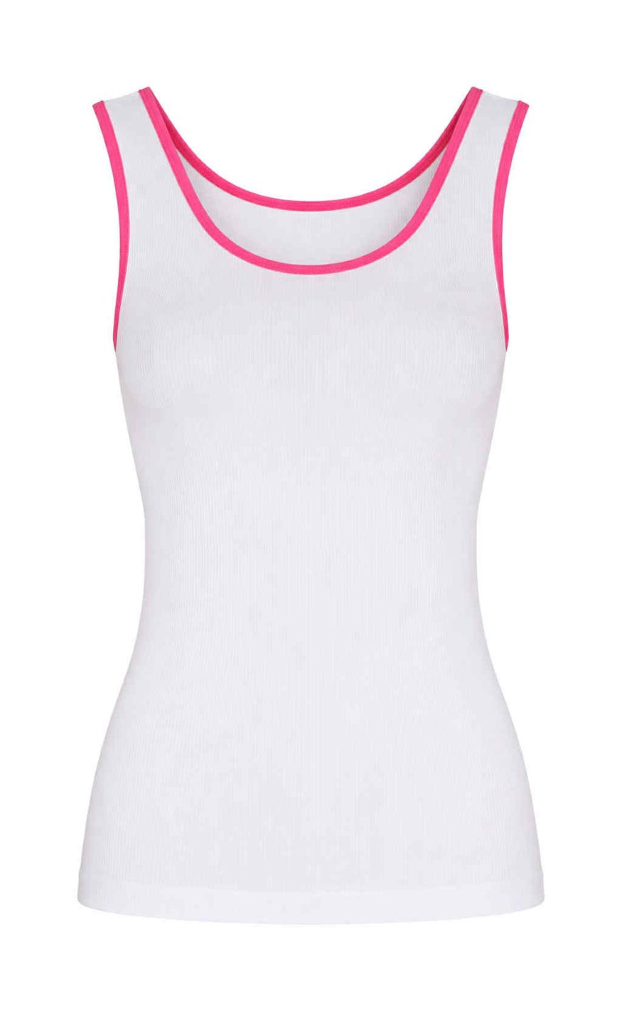 Ribbet top med brede stropper og rund udskæring, der giver et sporty og enkelt udtryk. De kontrastfarvede kanter tilfører et friskt og moderne touch.