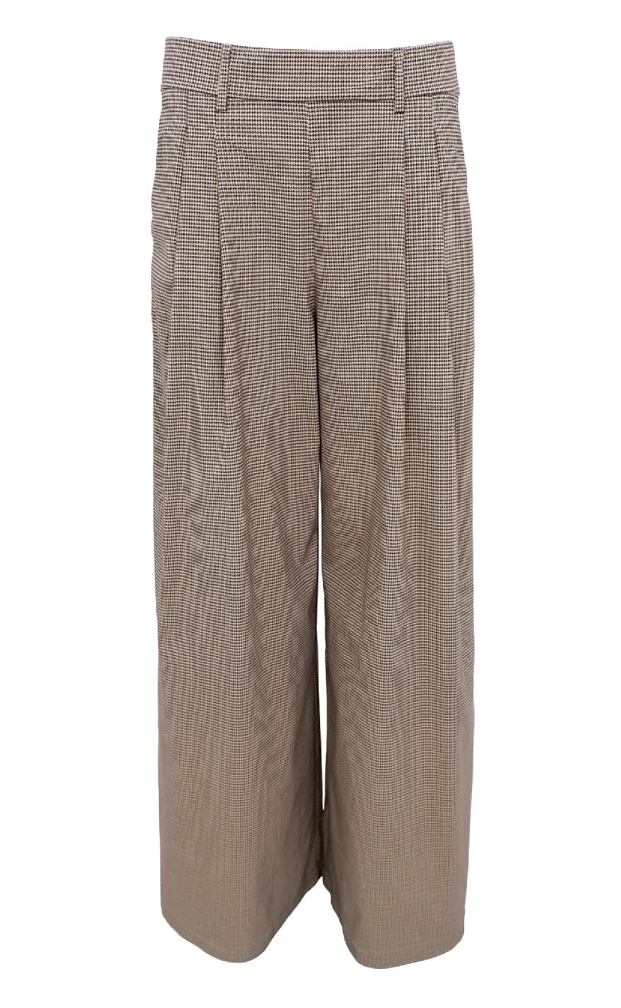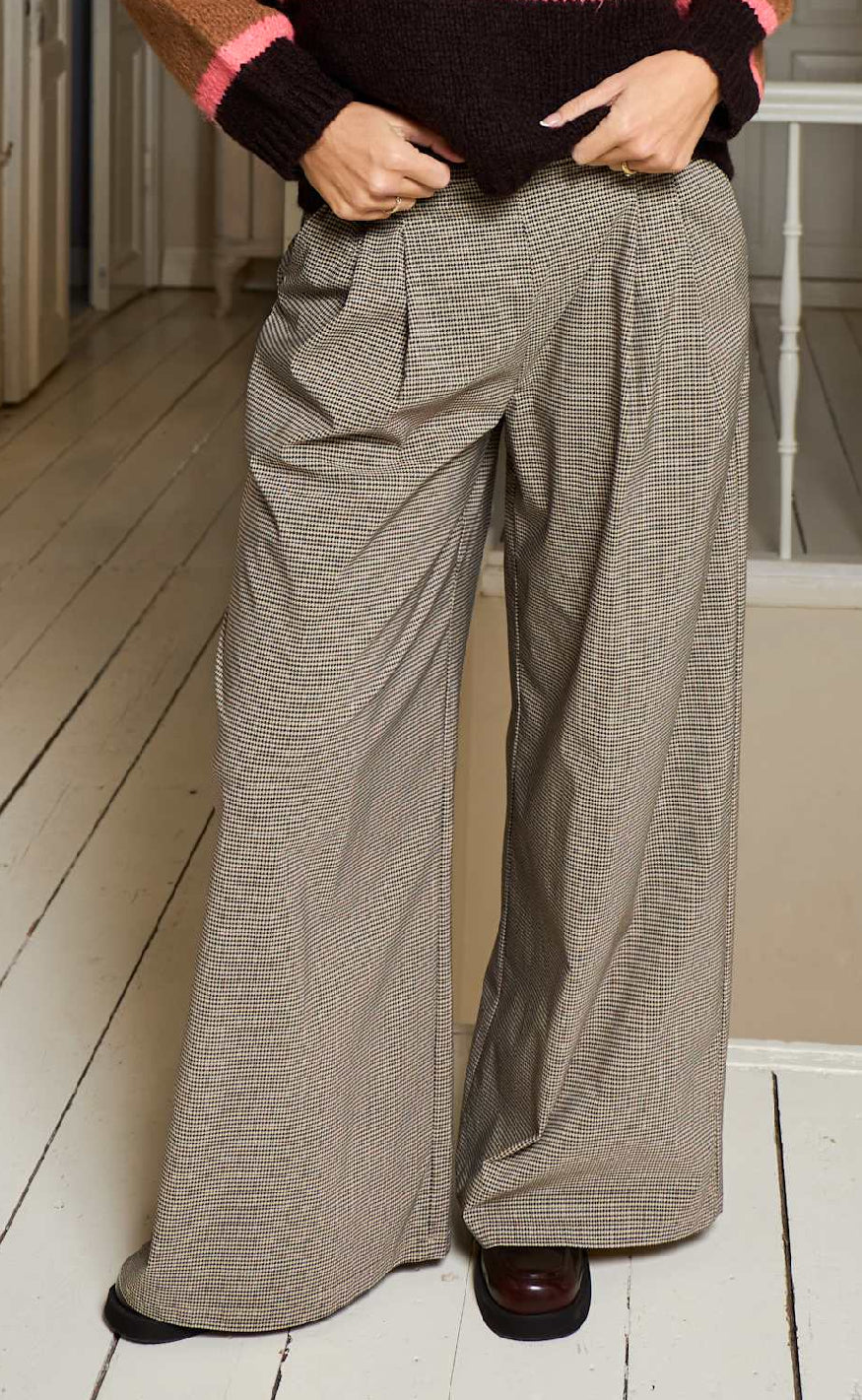 Bukser fra Black Colour i et klassisk ternet mønster i beige og brun nuancer. Bukserne har en løs pasform med vide ben og bæltestropper i taljen.