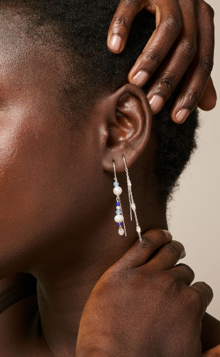 Sofia kædeøreringe er fyldige og livlige, når de kommer på øret. De består af sten og perler, som giver dem kant og feminin charme. Du kan skabe alverdens looks med disse øreringe, alt efter om du kombinerer dem med et par tynde hoops, barokke perler eller nogle søde ørestikker.