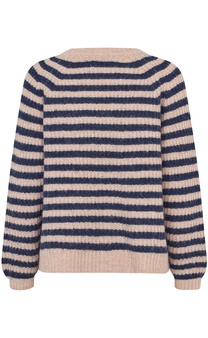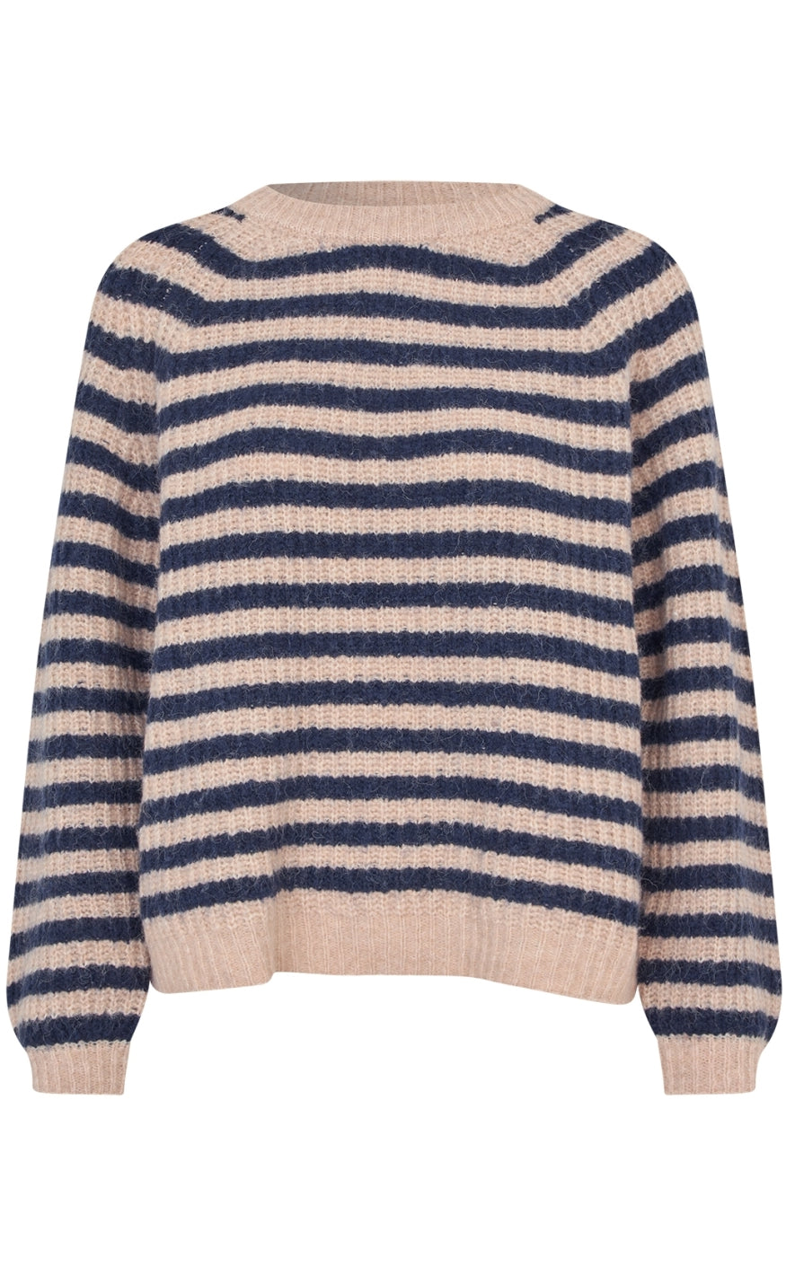 Stribet striktrøje fra Lollys Laundry i beige og navy striber.