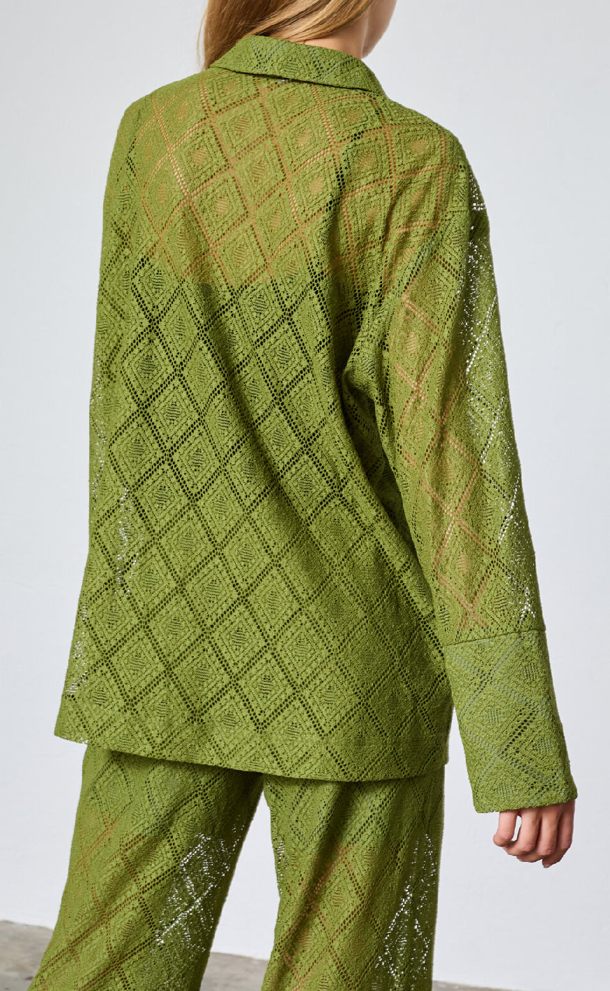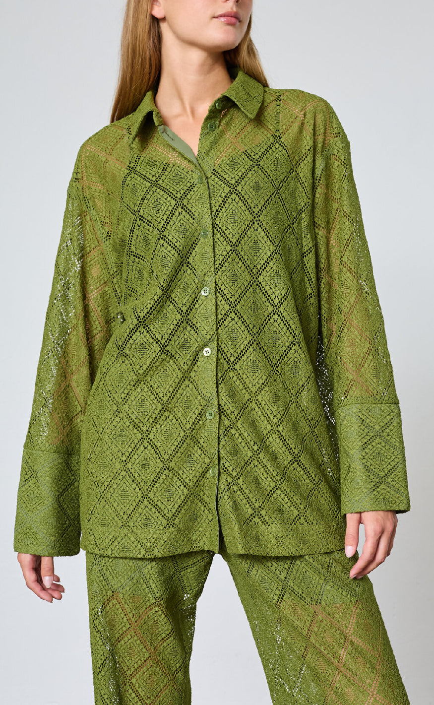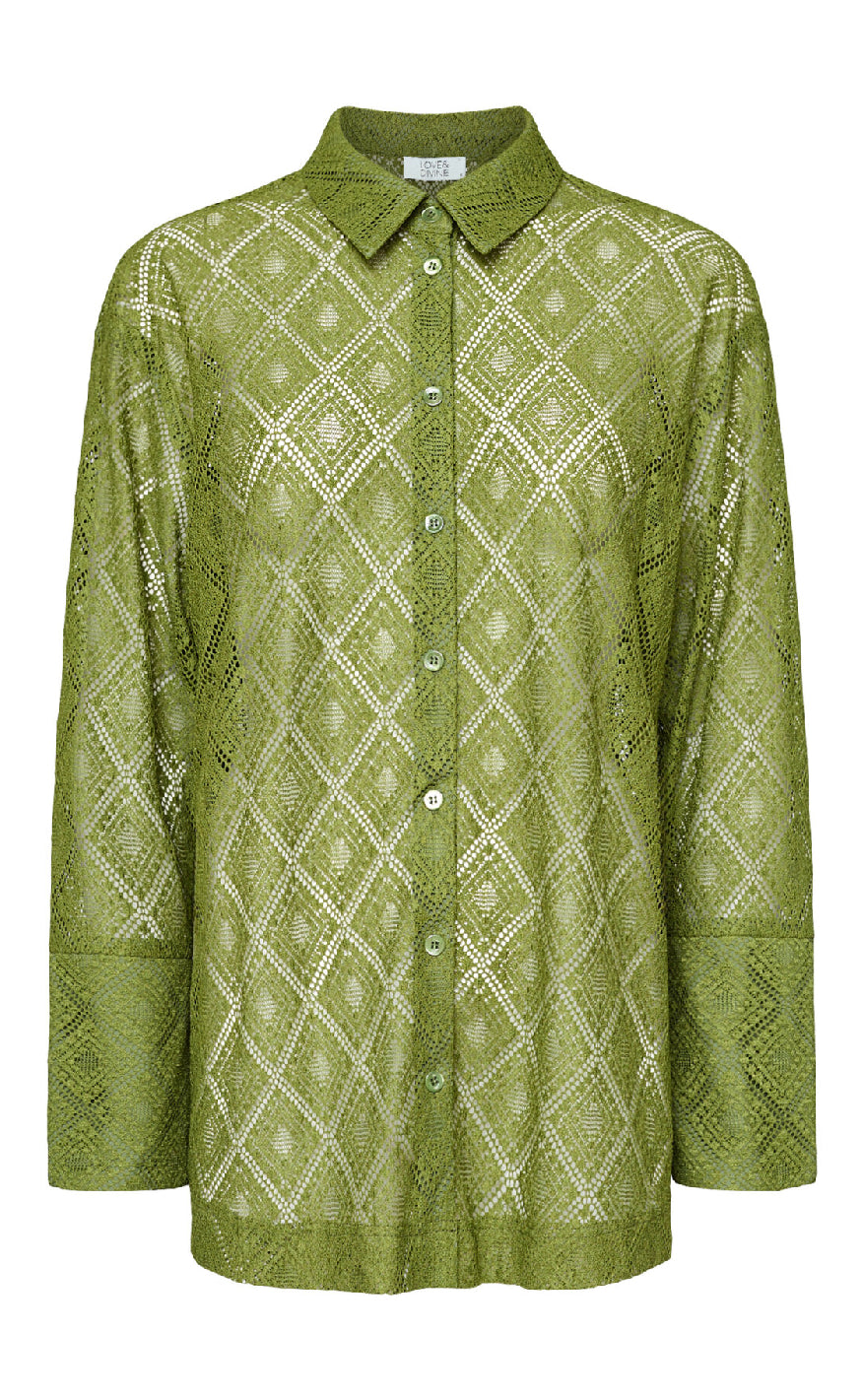 Flot skjorte fra Love & Divine i grøn, i et smukt mønster.
