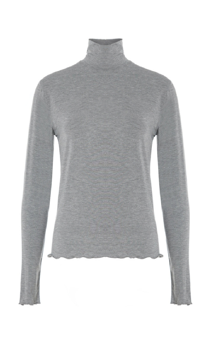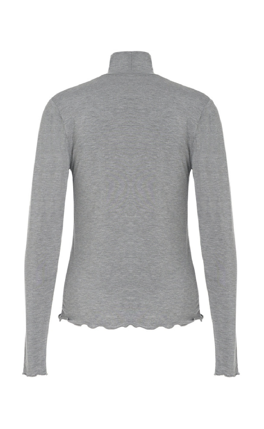 Grå bluse fra Luxzuz med høj hals og lange ærmer.
