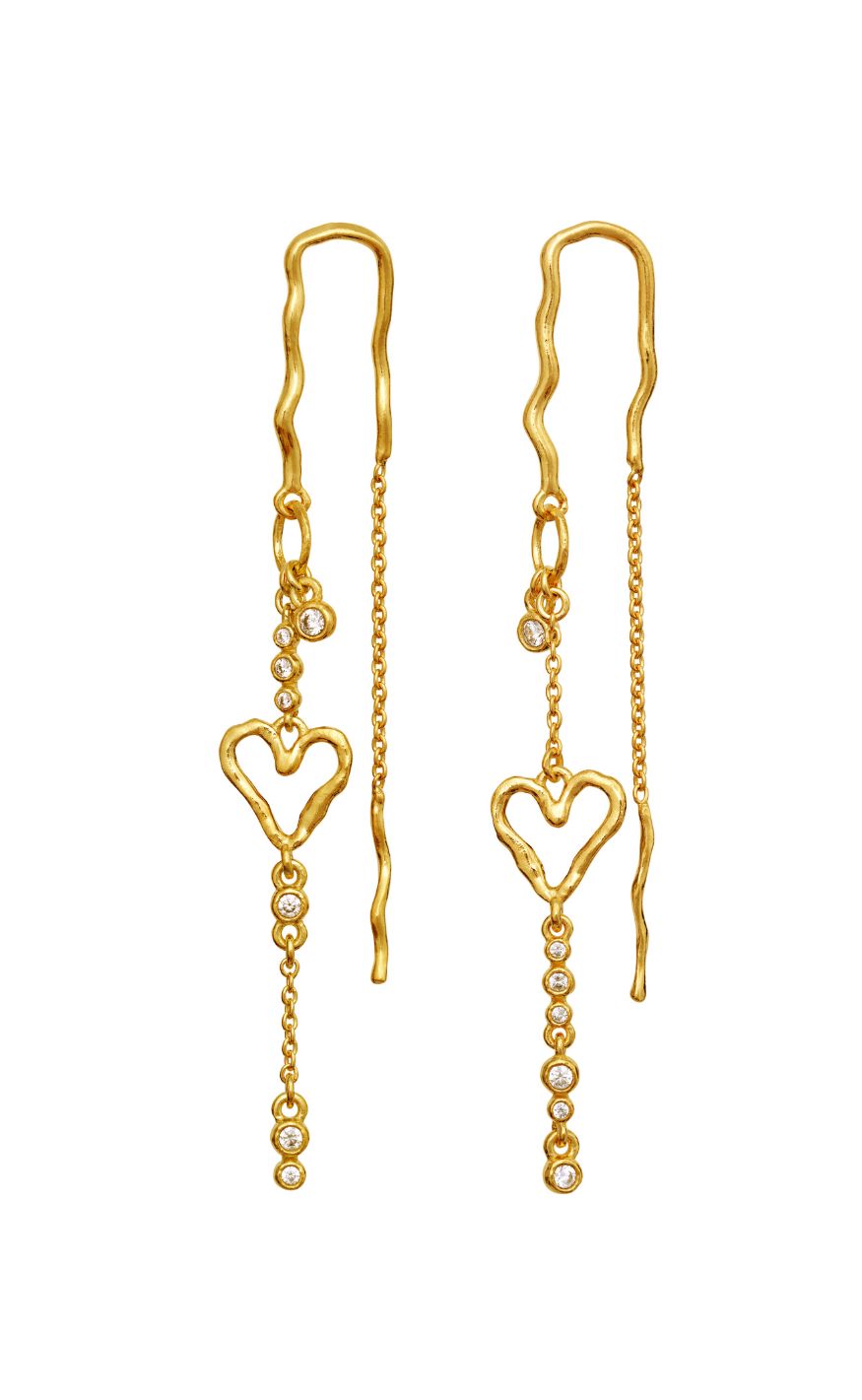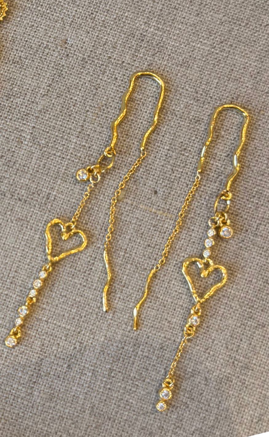 Smukke lange øreringe med fine hjerte og sten-detaljer.