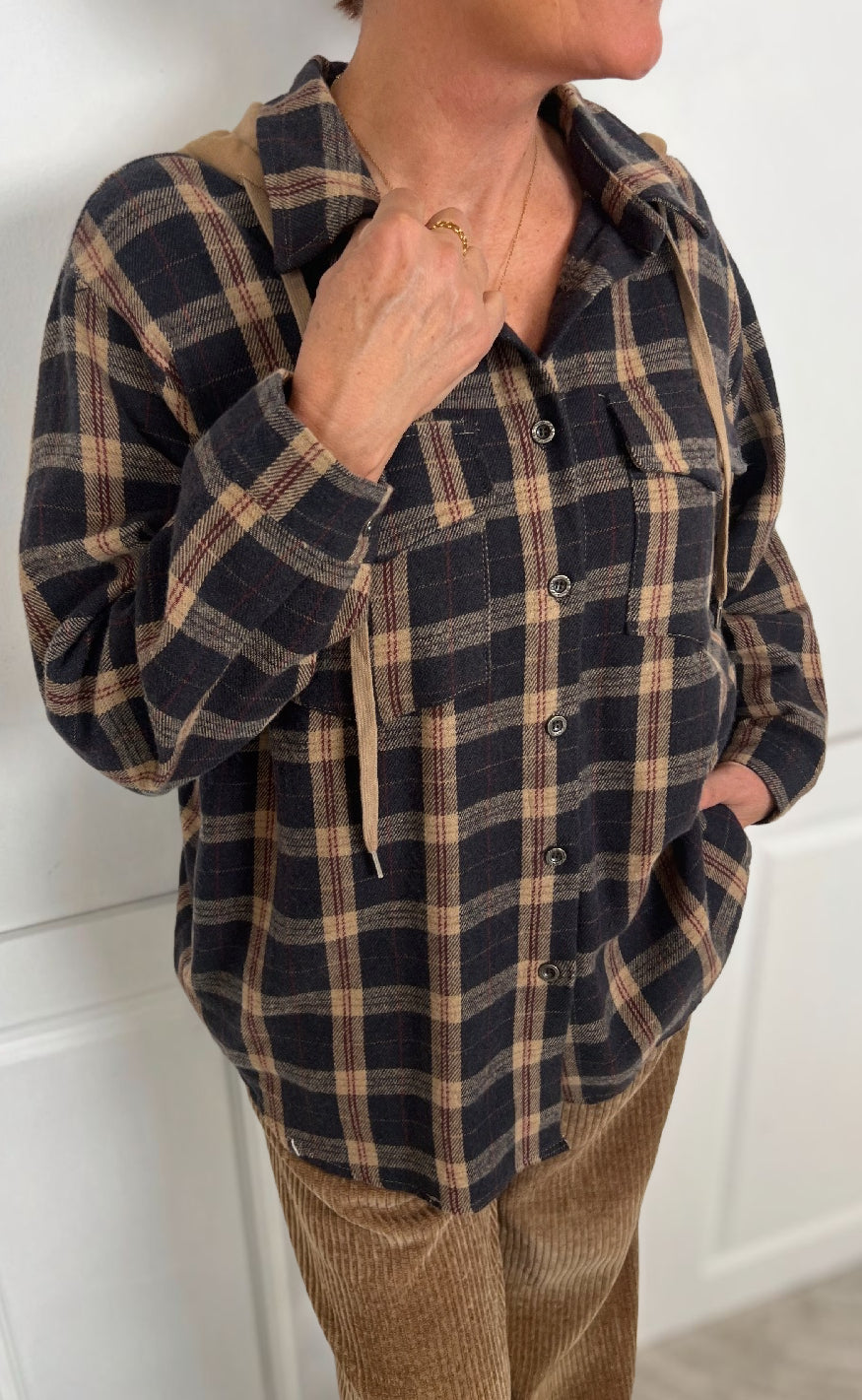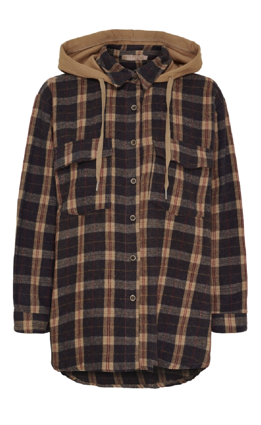 Ternet skjorte fra Marta Du Chateau i mørkeblå og beige nuancer. Skjorten har lange ærmer, knaplukning foran og to brystlommer med klap.