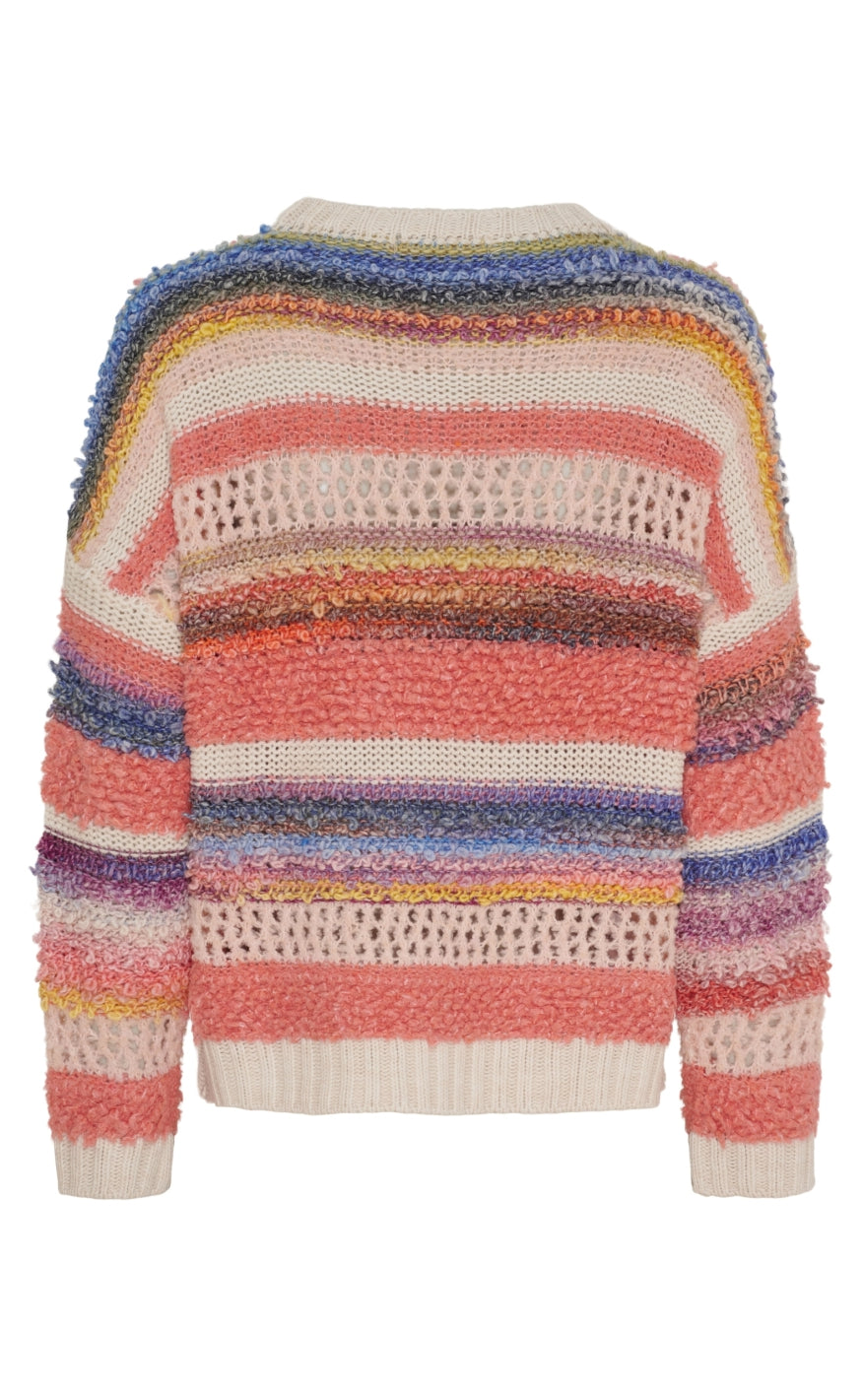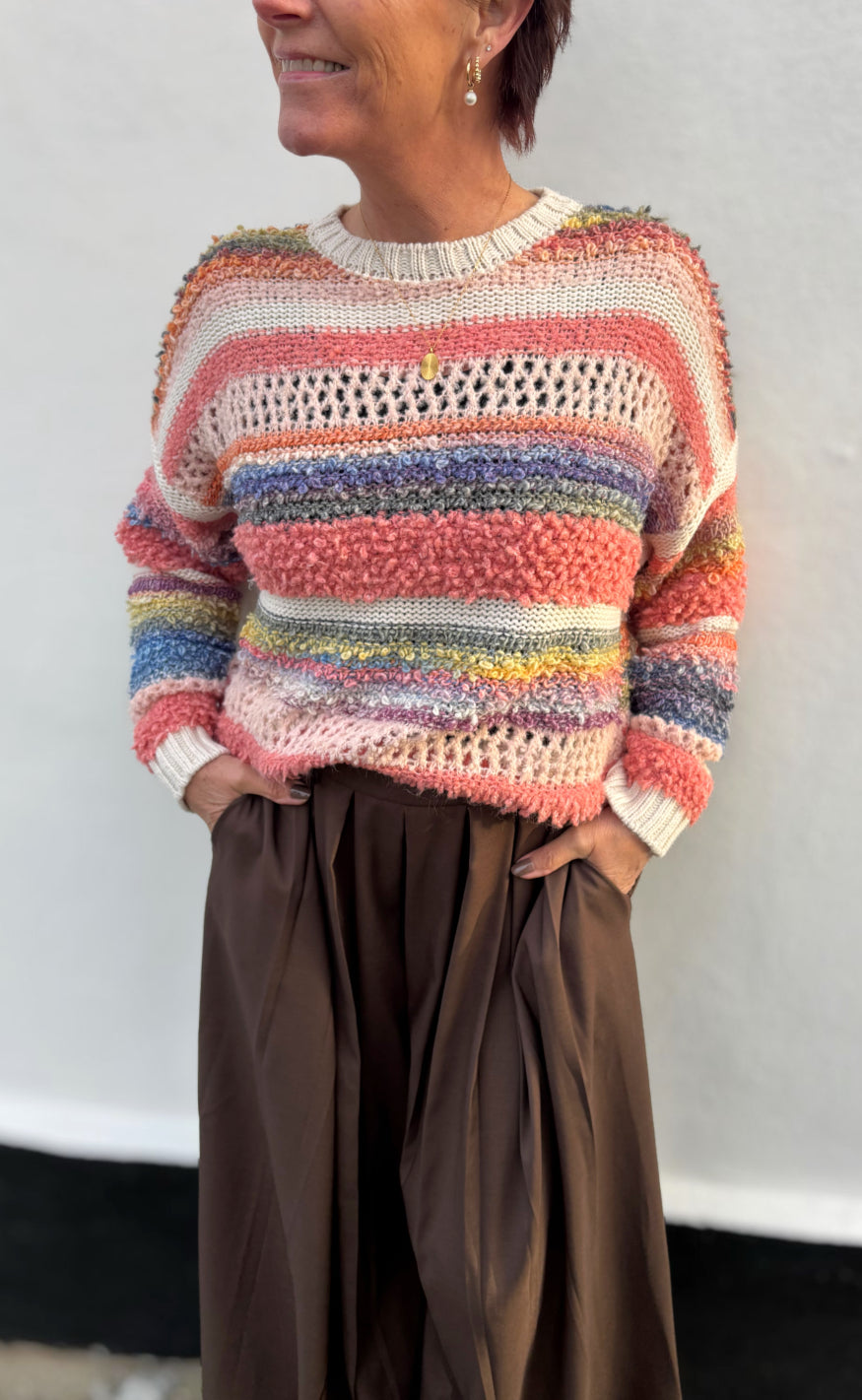 Farverig striktrøje fra Marta Du Chateau med brede striber i rosa, blå, grønne og creme nuancer.