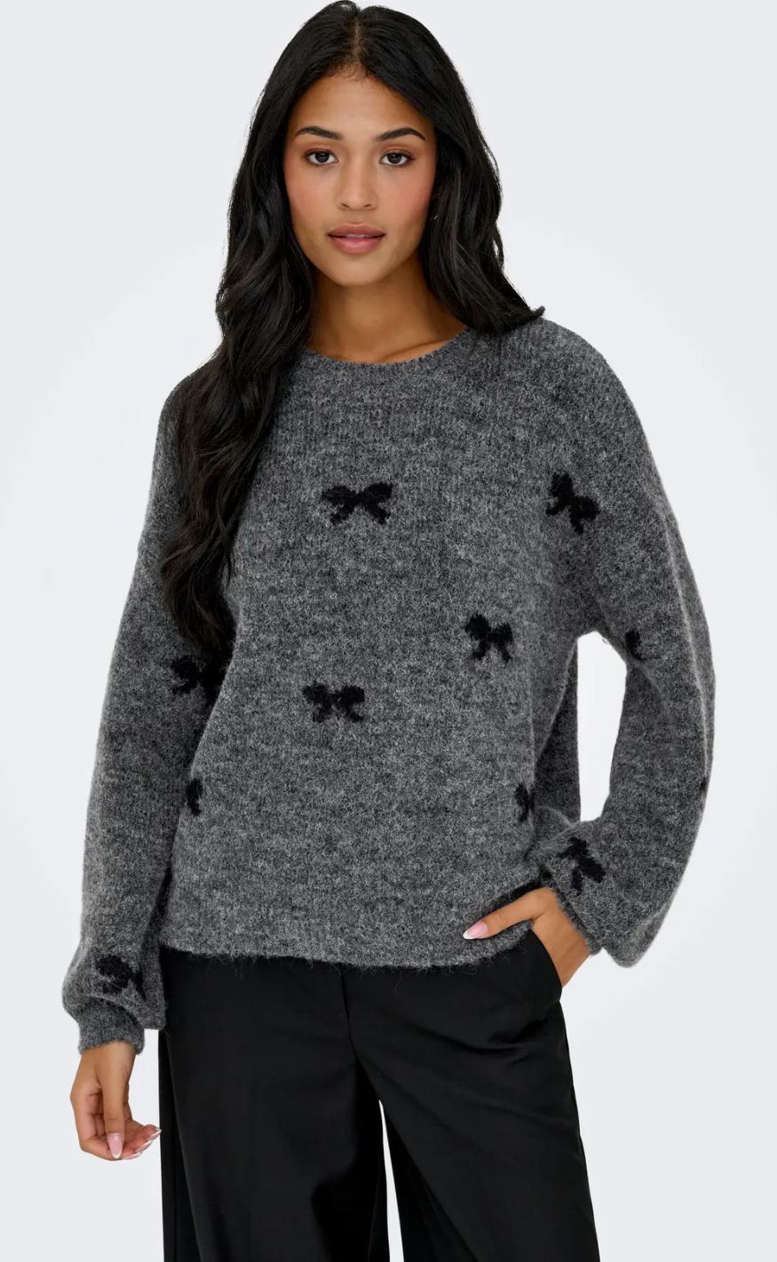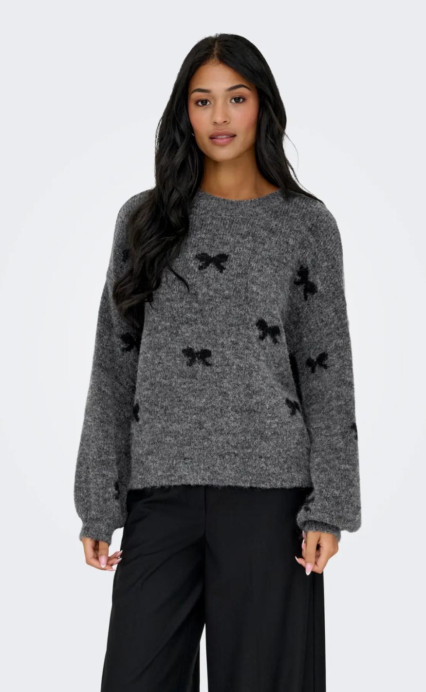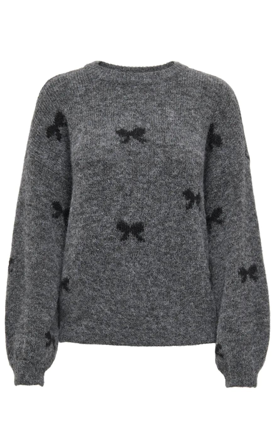 Lækker striktrøje i grå med hjerte.