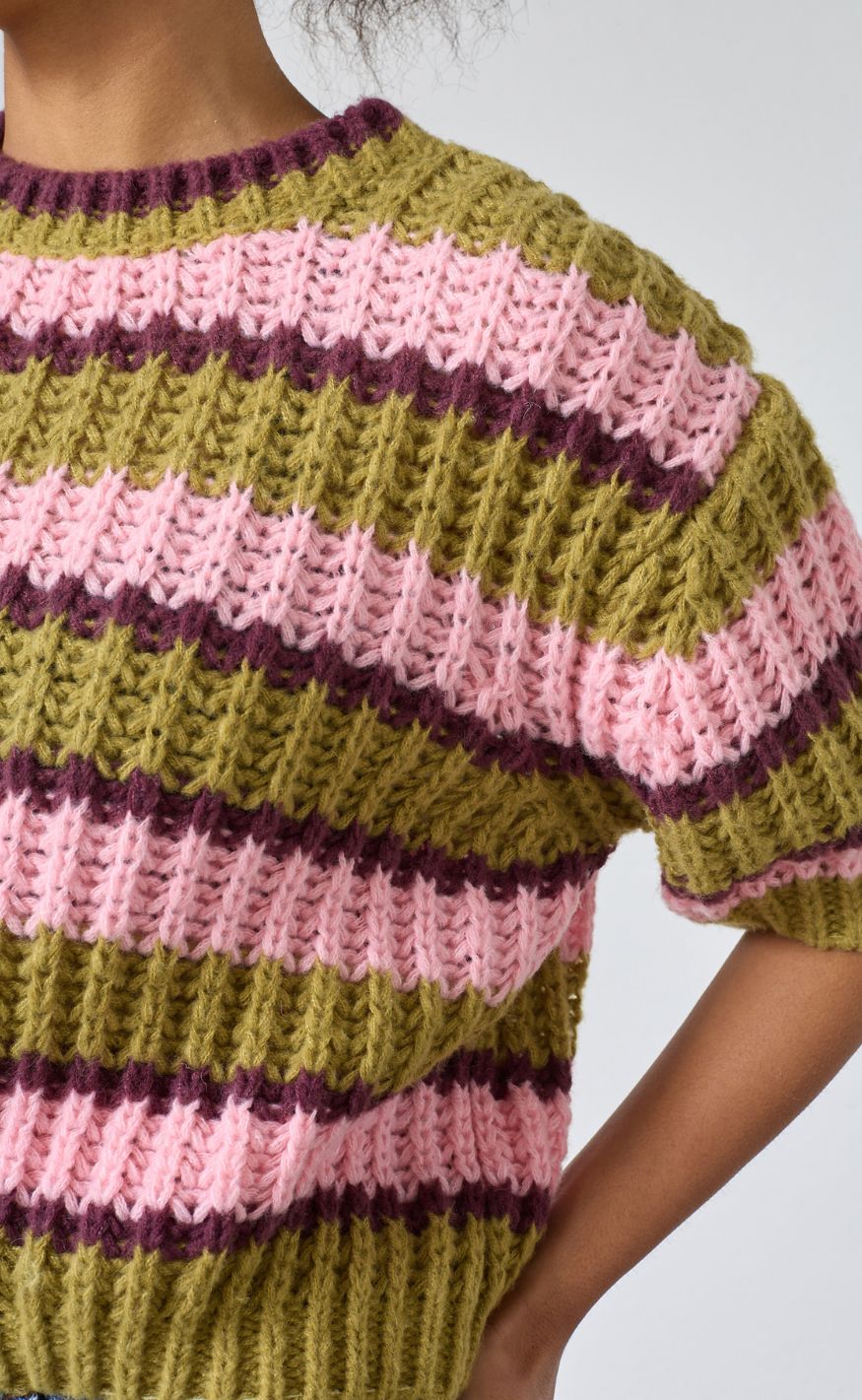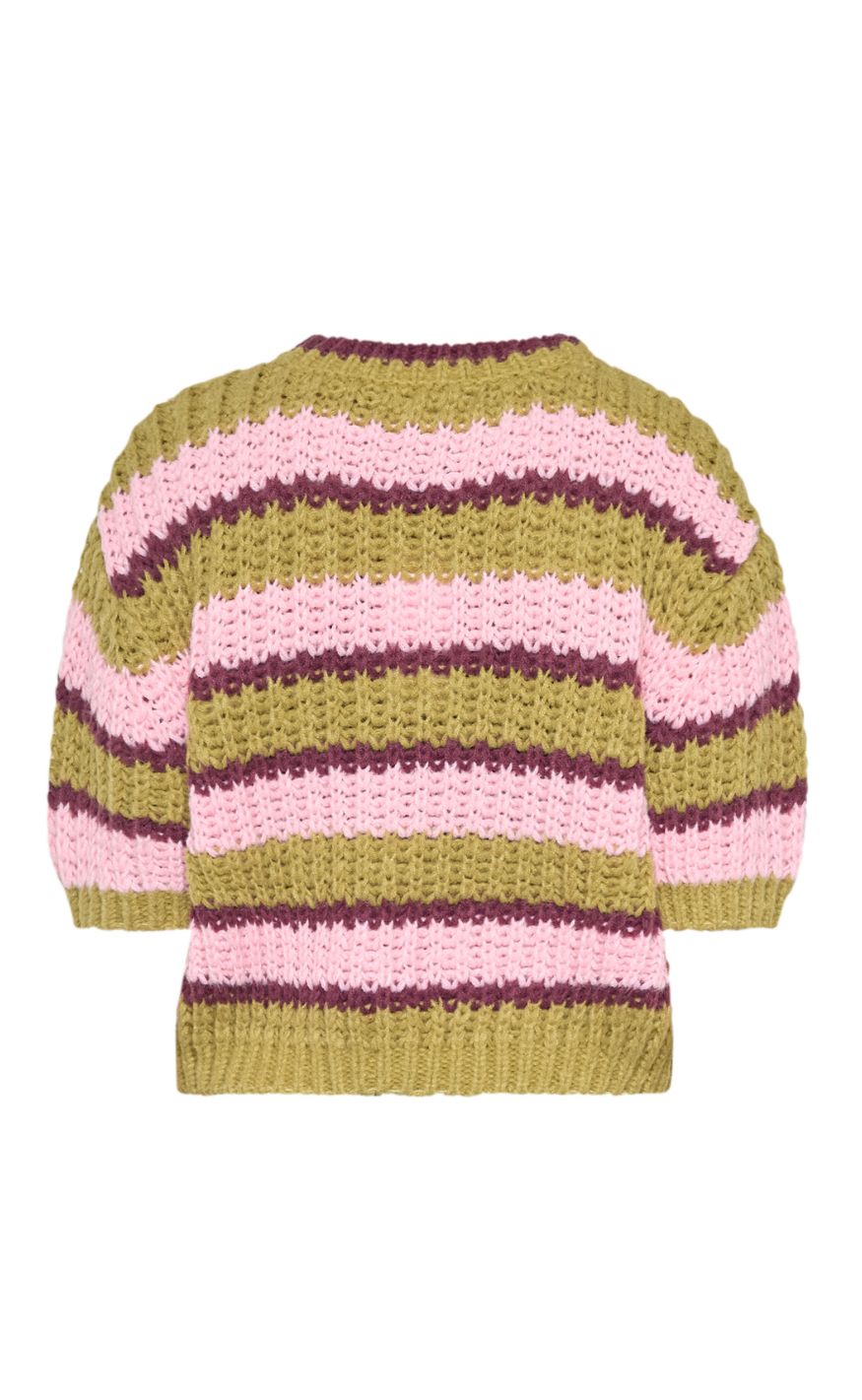 Blød strik fra Sisters Point med et vandret mønster i flere nuancer.