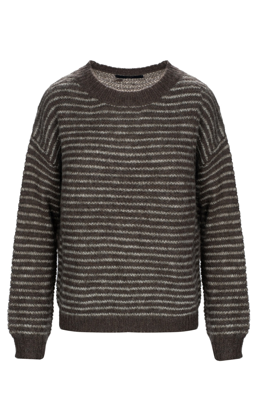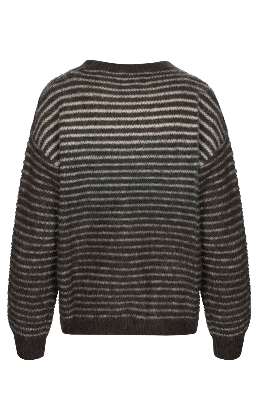 Strikket sweater fra Luxzuz med brede horisontale striber i jordnære nuancer – en blød og afslappet style til hverdagen.