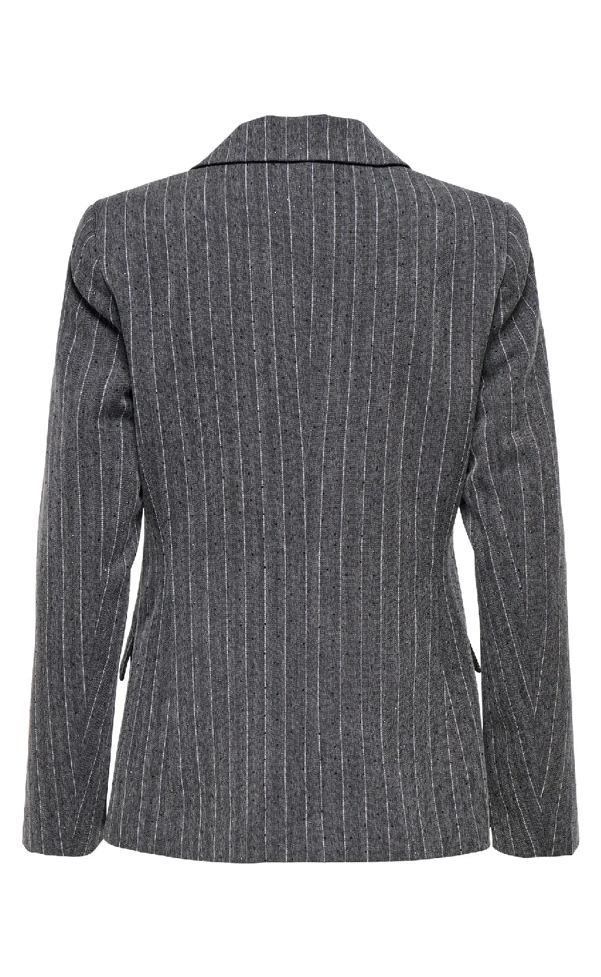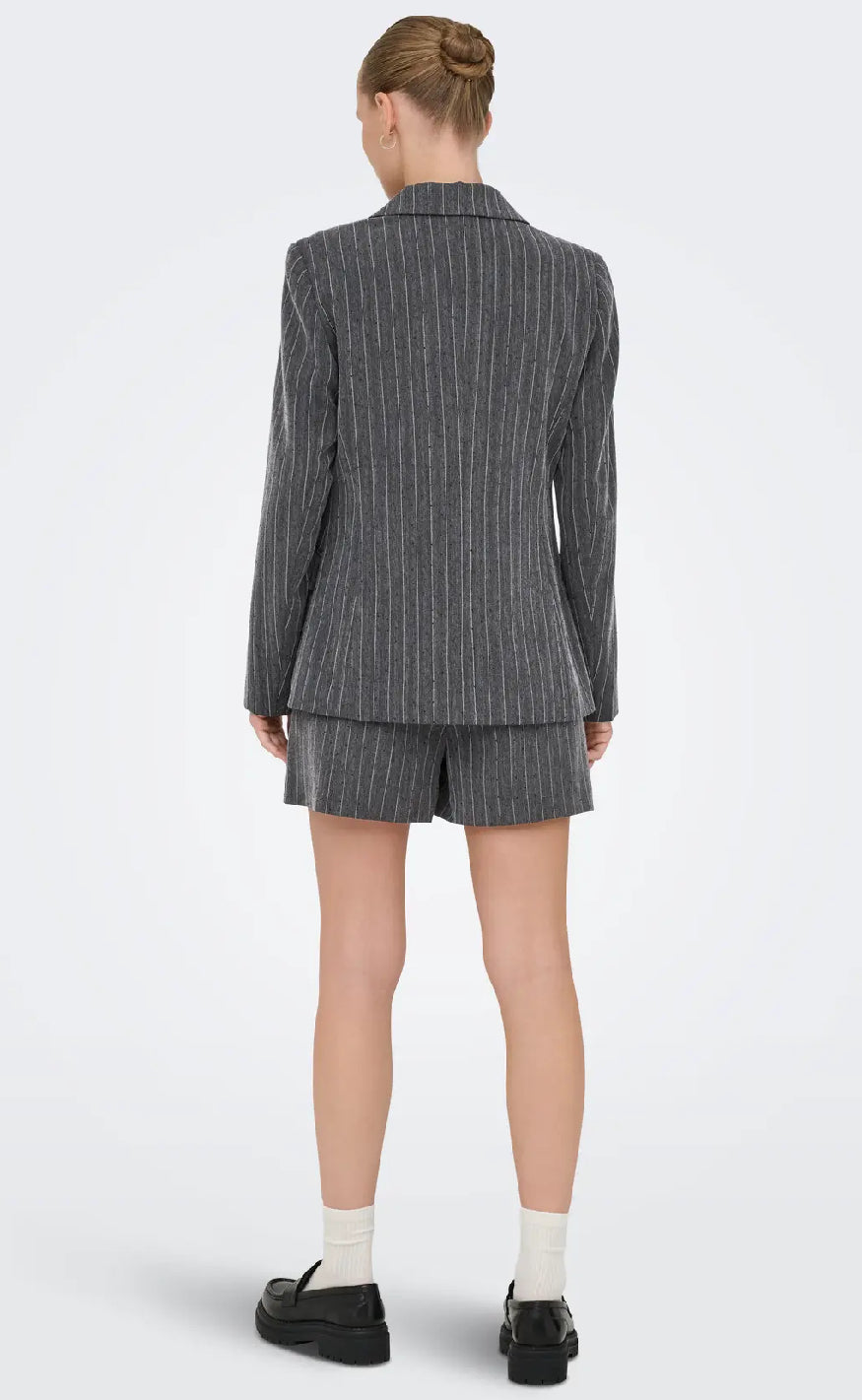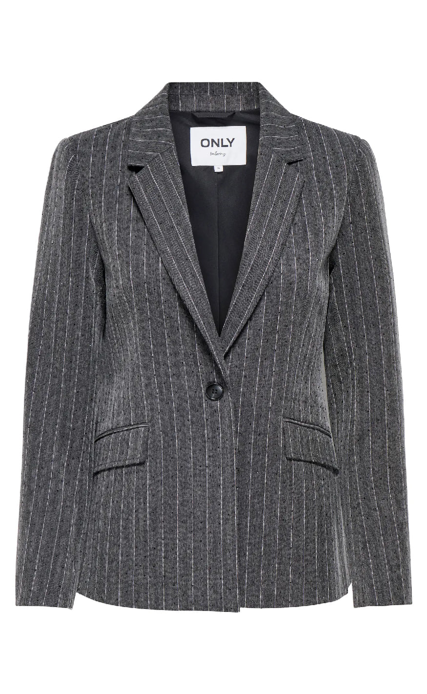Klassisk blazer fra ONLY i en elegant grå nuance med fine, lodrette striber, der giver et sofistikeret og tidløst look.