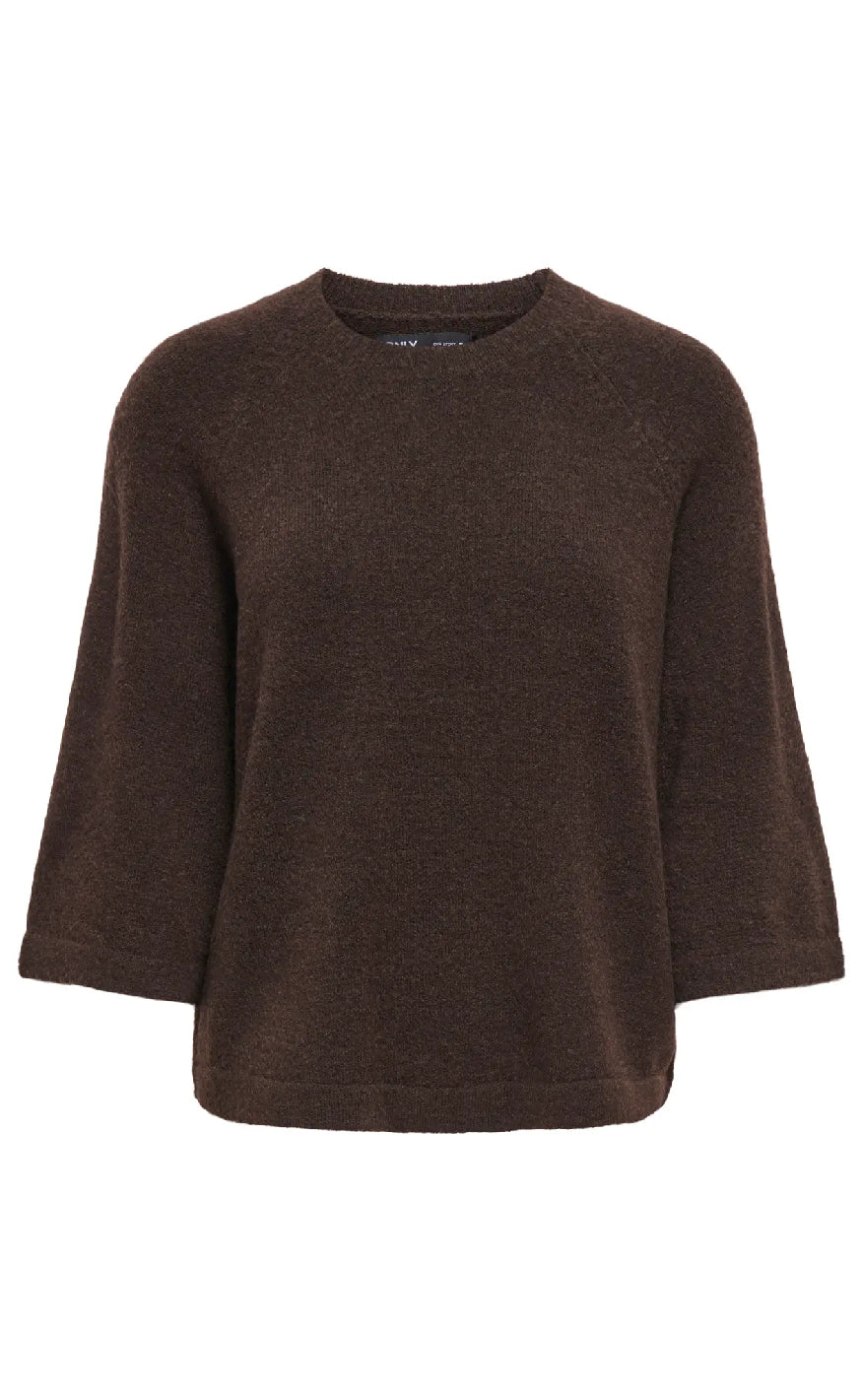 Strik pullover fra ONLY i en mørkebrun nuance.