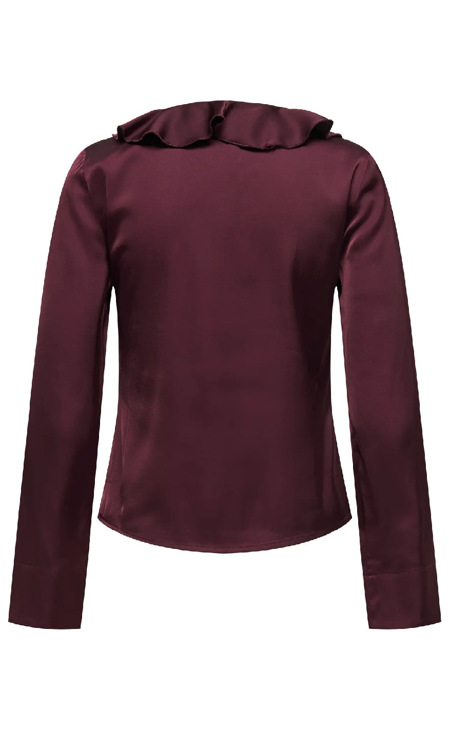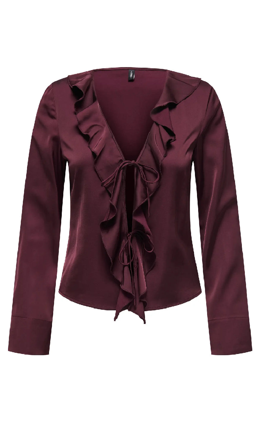 Feminin bluse fra ONLY i et skinnende brunt print.