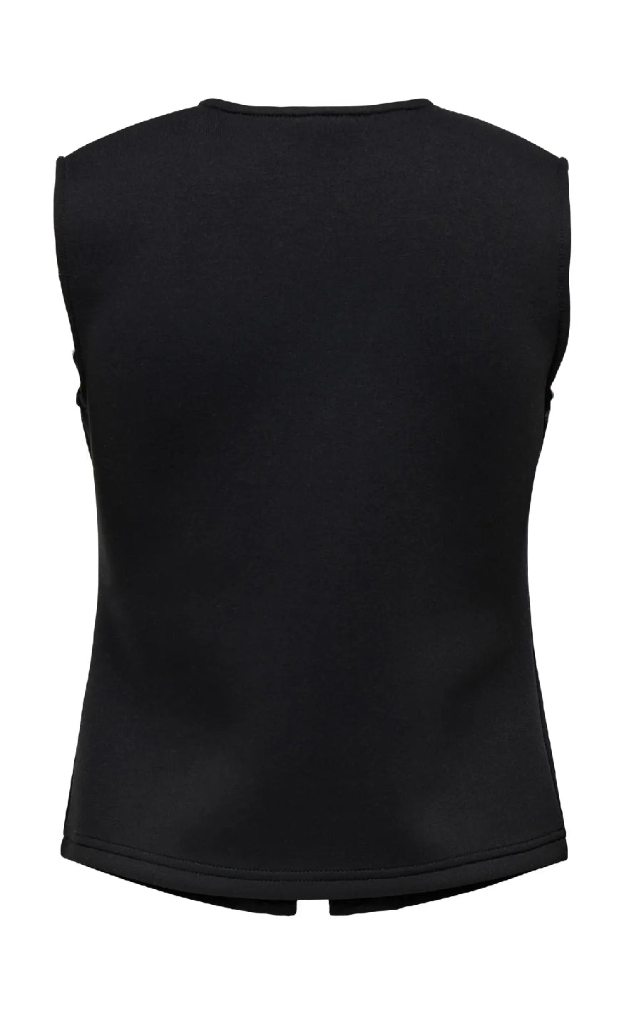 Sort vest fra ONLY med V-udskæring og dekorative guldfarvede knapper – et stilrent og moderne valg til lag-på-lag styling.