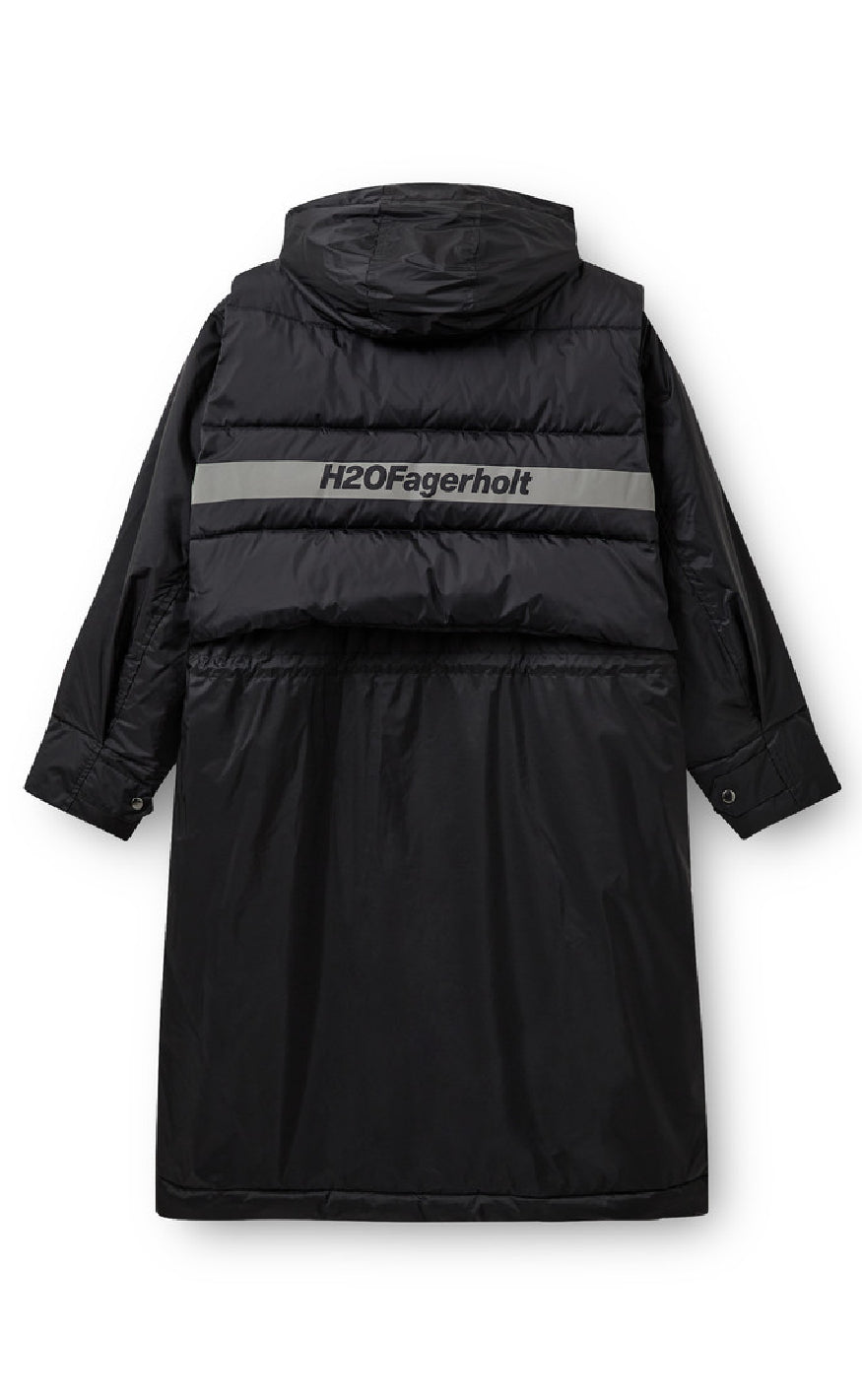 Warm Rain jakken fra H2O Fagerholt er i en varm, foret udgave. Brug den hætteklædte, vandtætte skal og den aftagelige vest hver for sig – eller lag dem for ekstra varme.
