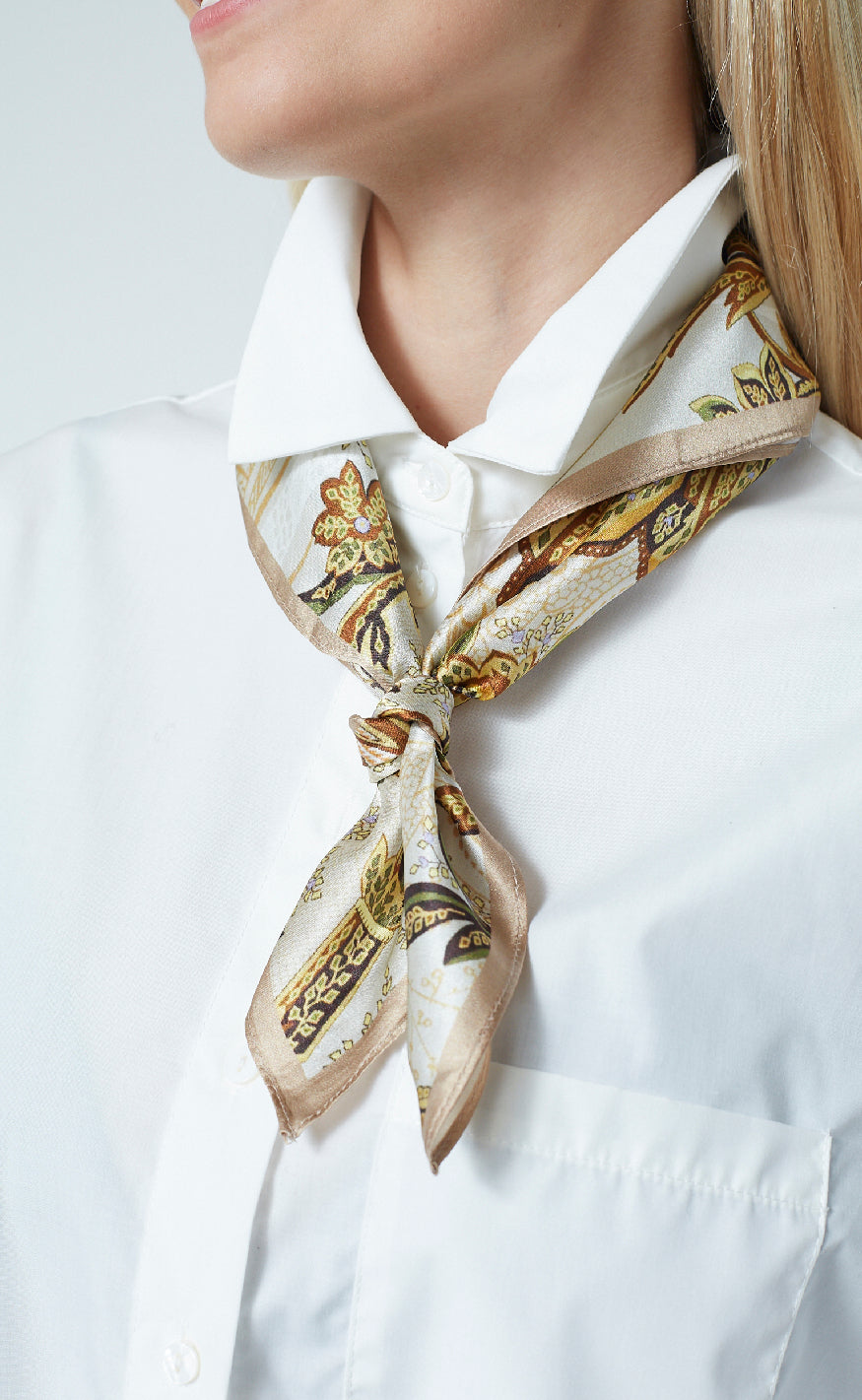 Elegant silke tørklæde fra Sisters Point i et gult print.