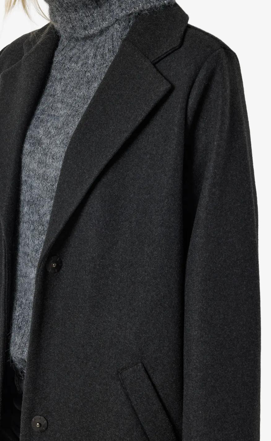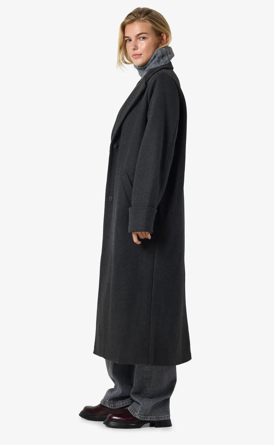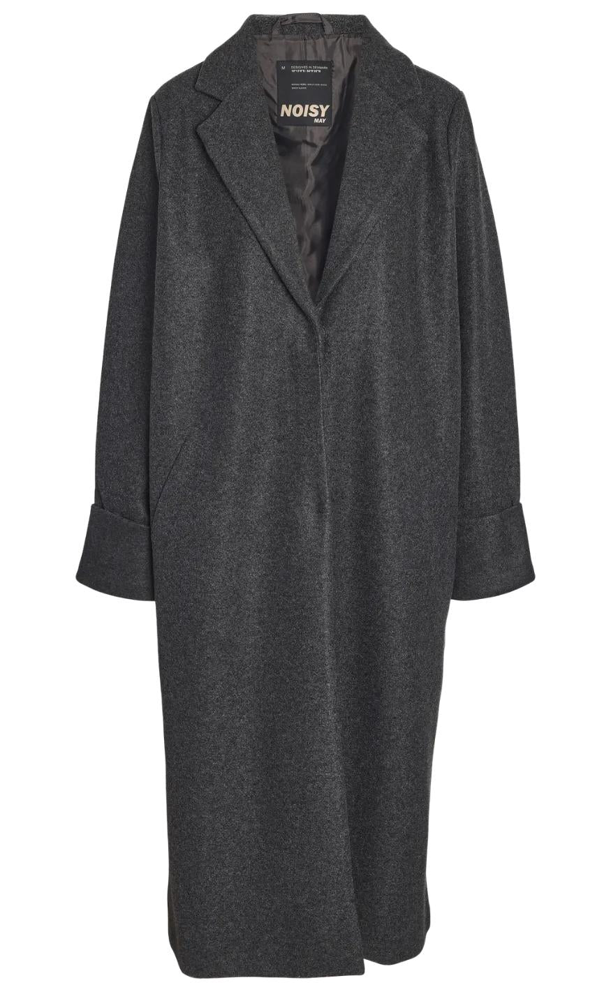 Jakken er mørkegrå og har et klassisk trendscoat fit.
