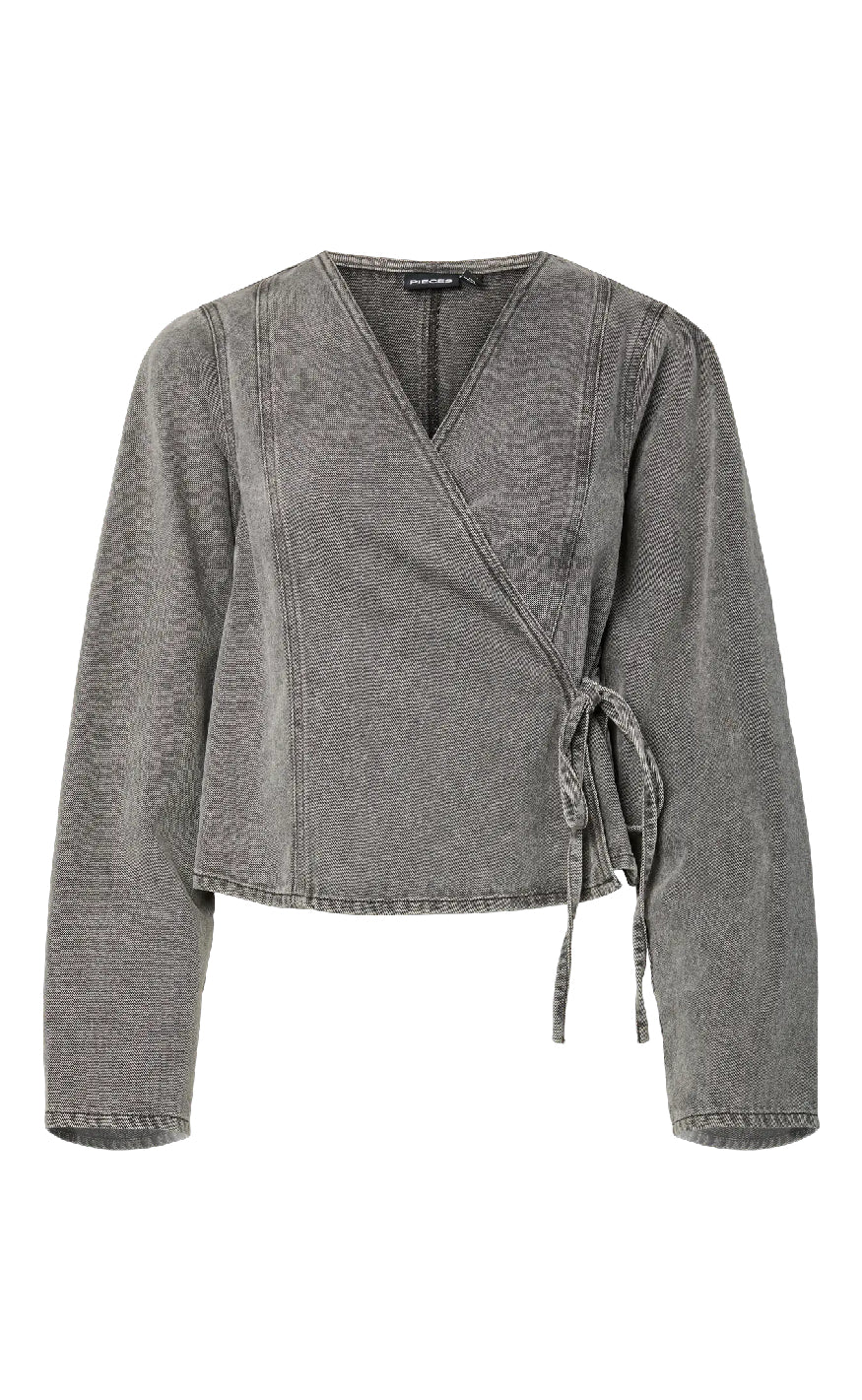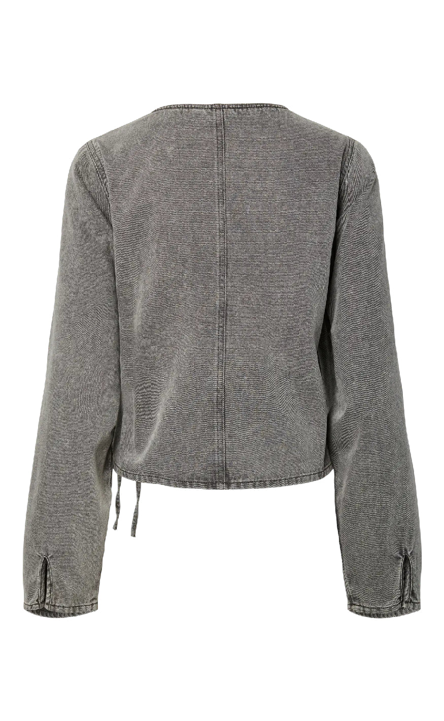 Flot denim skjorte fra Pieces i grå, med bindedetalje i siden.