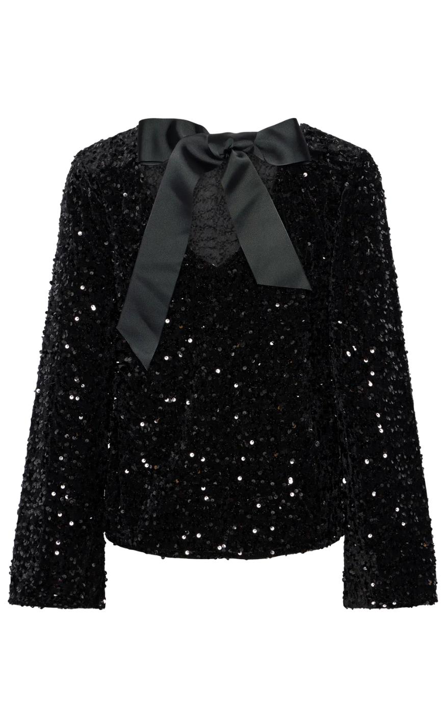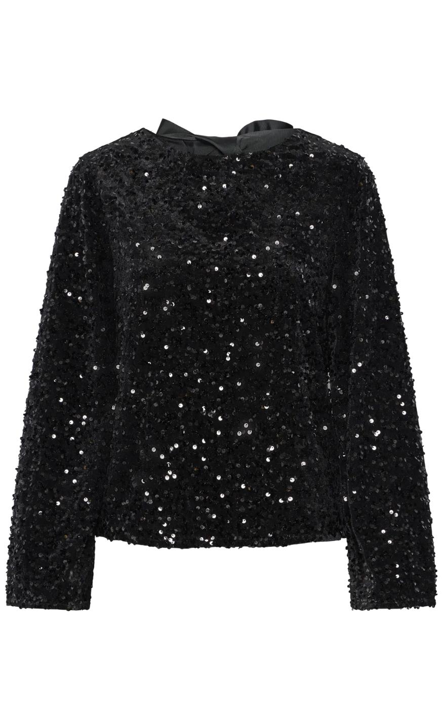Fin top fra Pieces, toppen er sort og har en masse plietter.