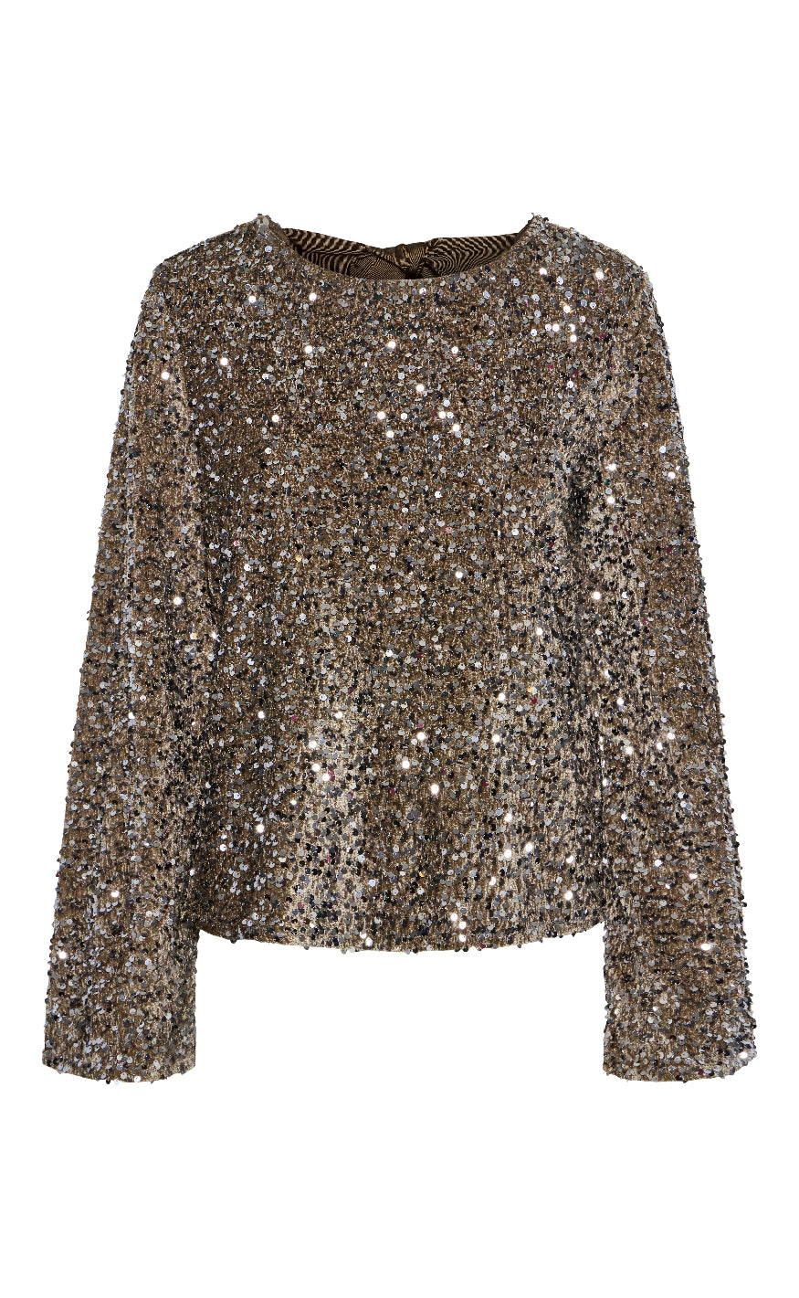 Fin top fra Pieces, toppen er grå og har en masse plietter.