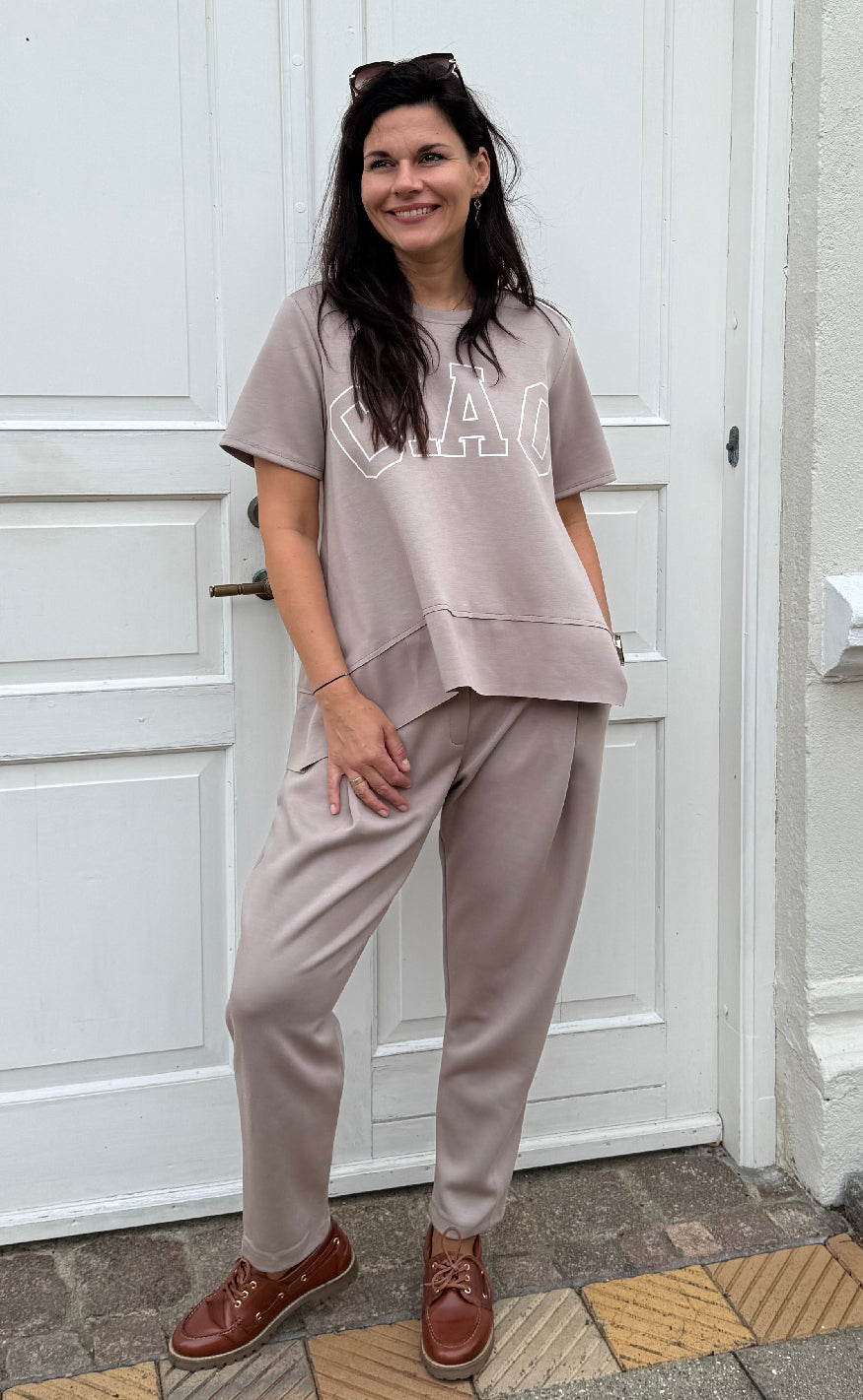 Denne t-shrit har korte ærmer, og skrift på brystet.